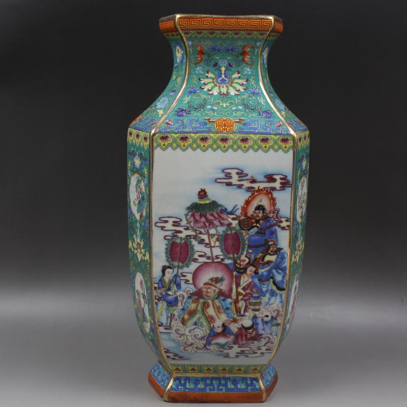 [2]清乾隆年制描金琺瑯彩人物鑲器瓶仿古瓷器家居觀賞擺件古董古玩1入