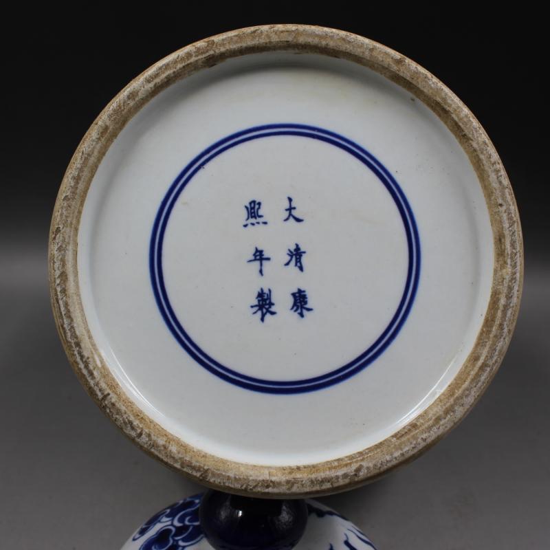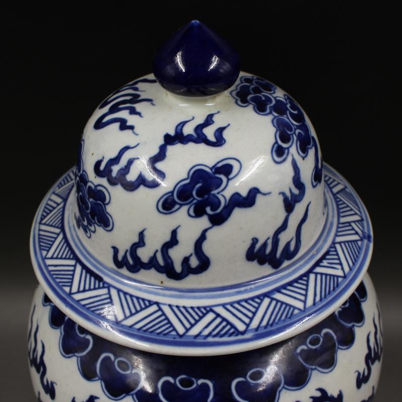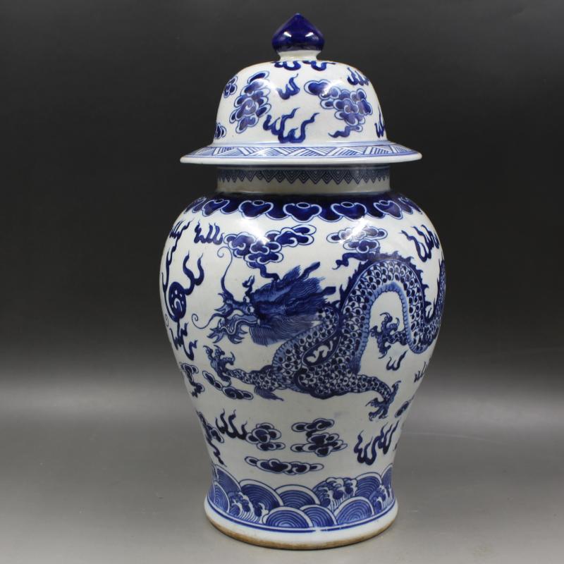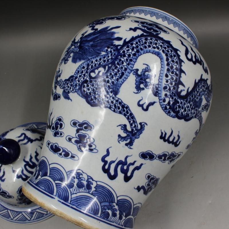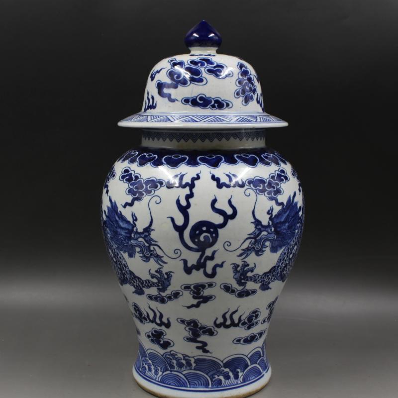 清康熙年制青花雙龍戲珠將軍罐 仿古老貨瓷器 家居擺件 古玩收藏1入