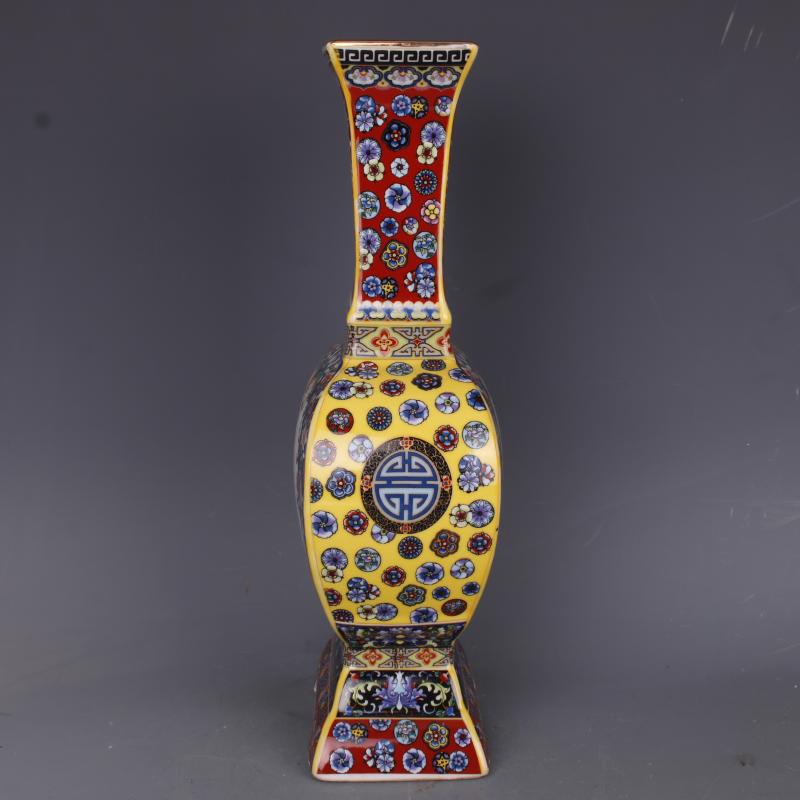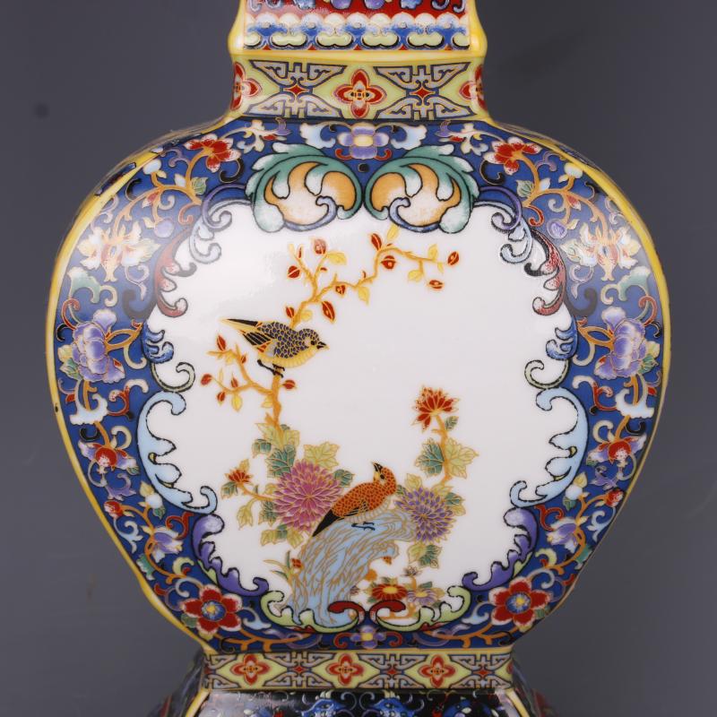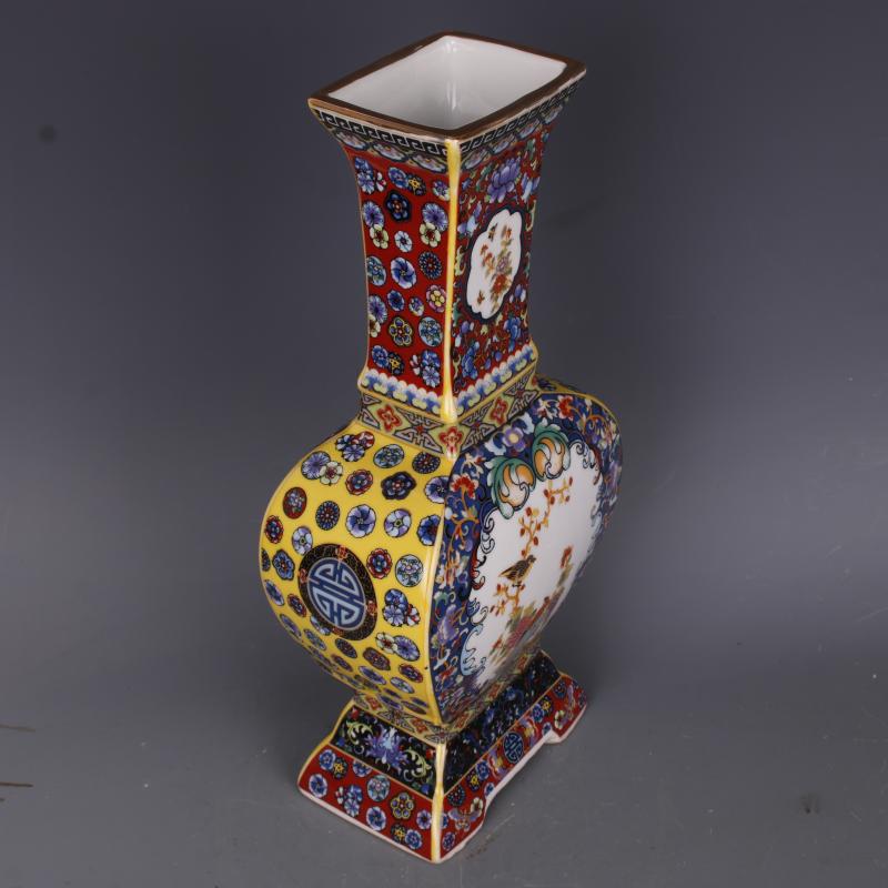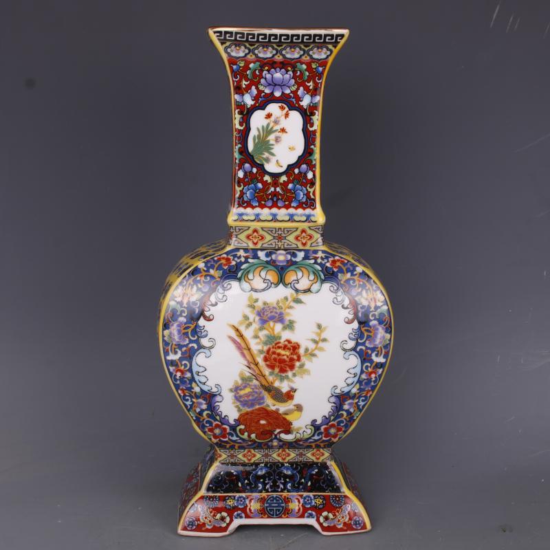 清乾隆年制爬花琺瑯彩花鳥四方瓶仿古老貨瓷器擺件古董古玩收藏1入
