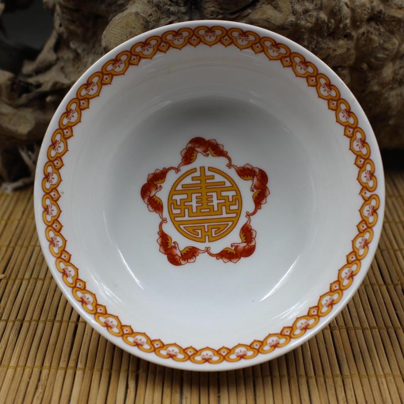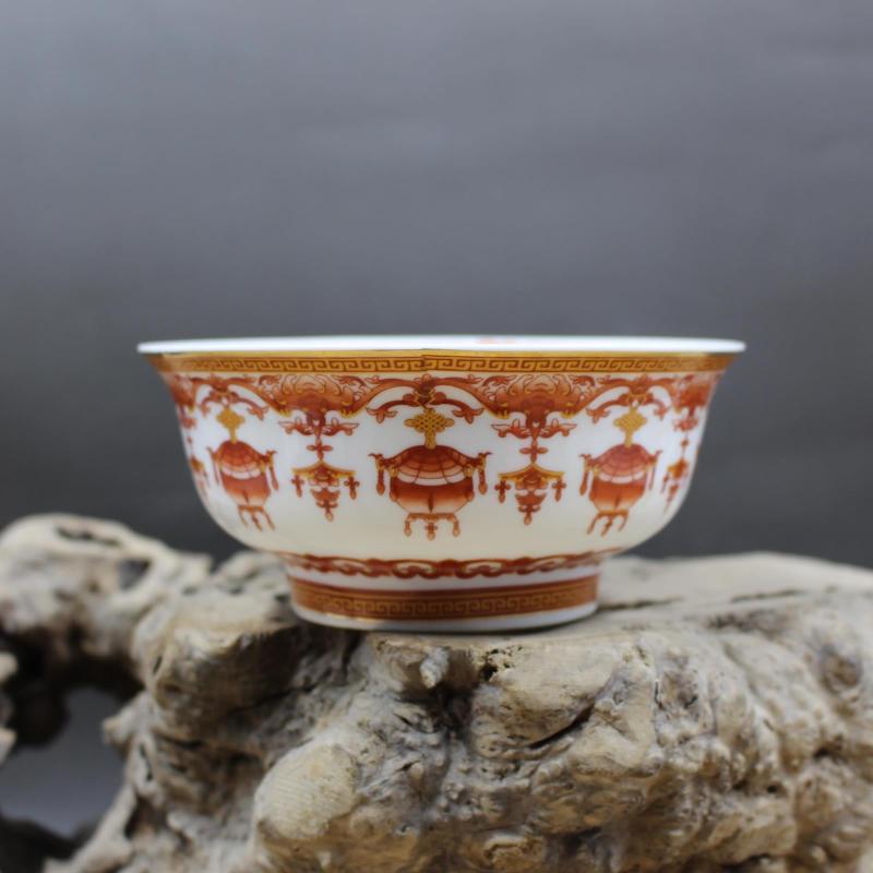清乾隆年制紅彩福壽馬蹄碗 仿古工藝擺件瓷器 古董古玩收藏1入