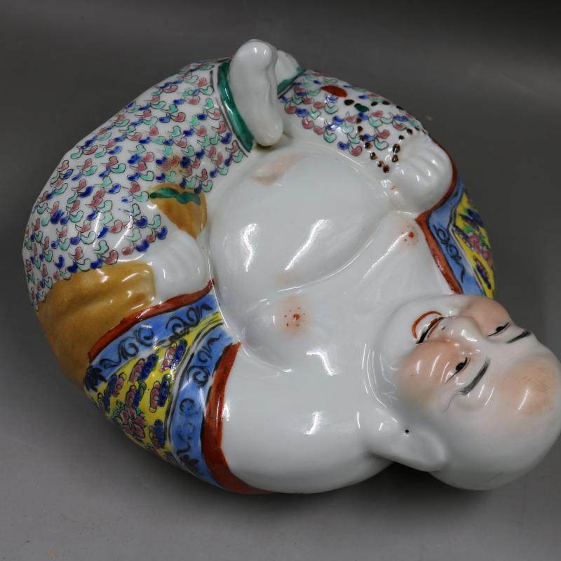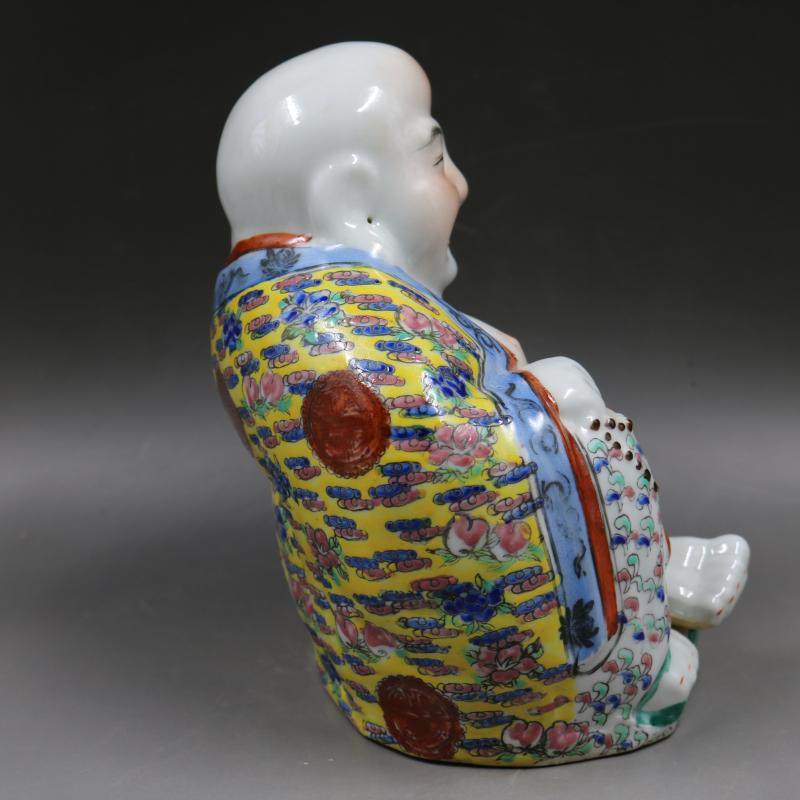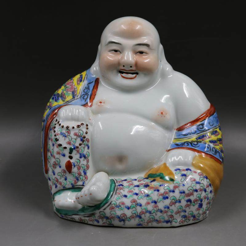民國粉彩雕塑彌勒佛像招財如意手工擺件收藏民間老貨瓷器古玩收藏1入