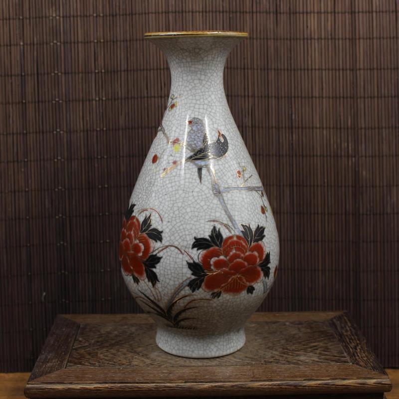 清乾隆粉彩描金牡丹花鳥玉壺春瓶 民間收藏老貨瓷器 古董古玩擺件1入