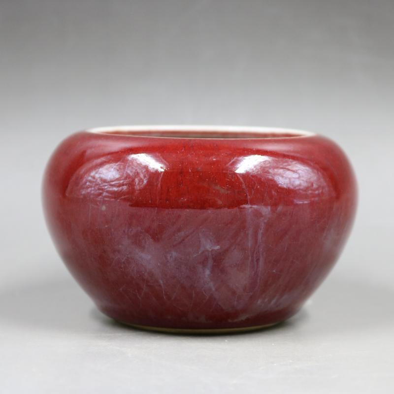 清同治郎紅釉水洗筆洗老貨文房裝飾瓷器擺件收藏仿古瓷器古董古玩1入