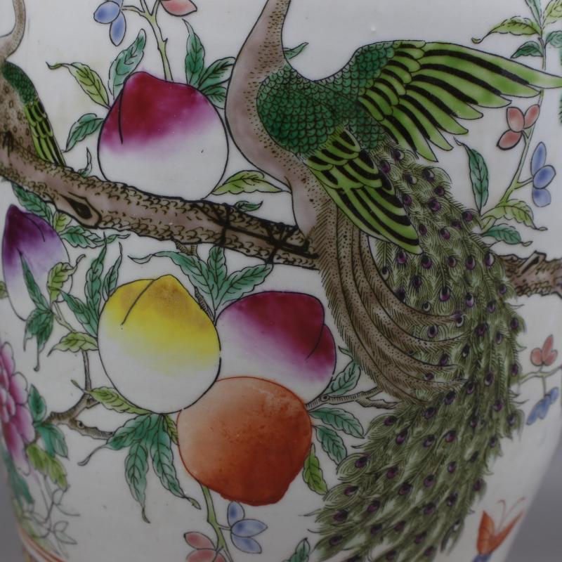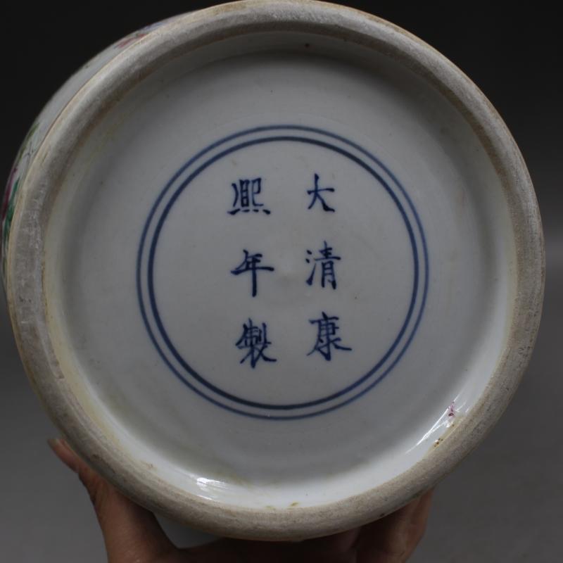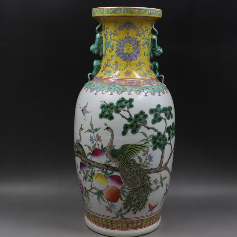 清康熙年制粉彩壽桃花鳥花瓶 家居擺件 仿古瓷器老貨古董古玩收藏1入