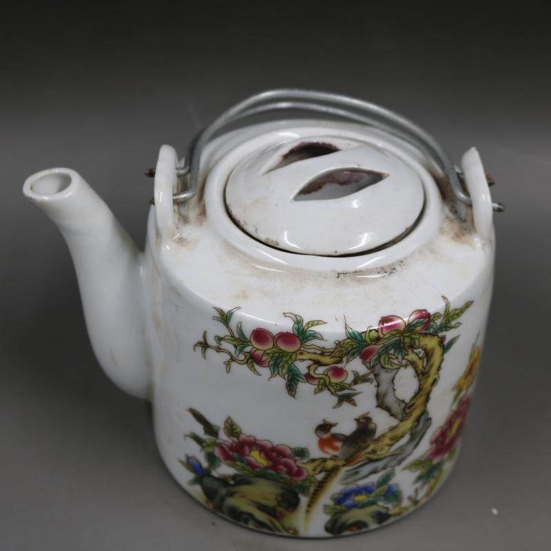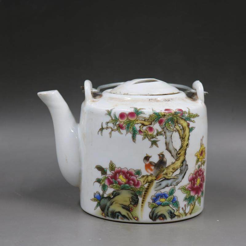 民國江西瓷業公司粉彩花鳥茶壺仿古瓷器收藏家居擺件古董古玩茶具1入