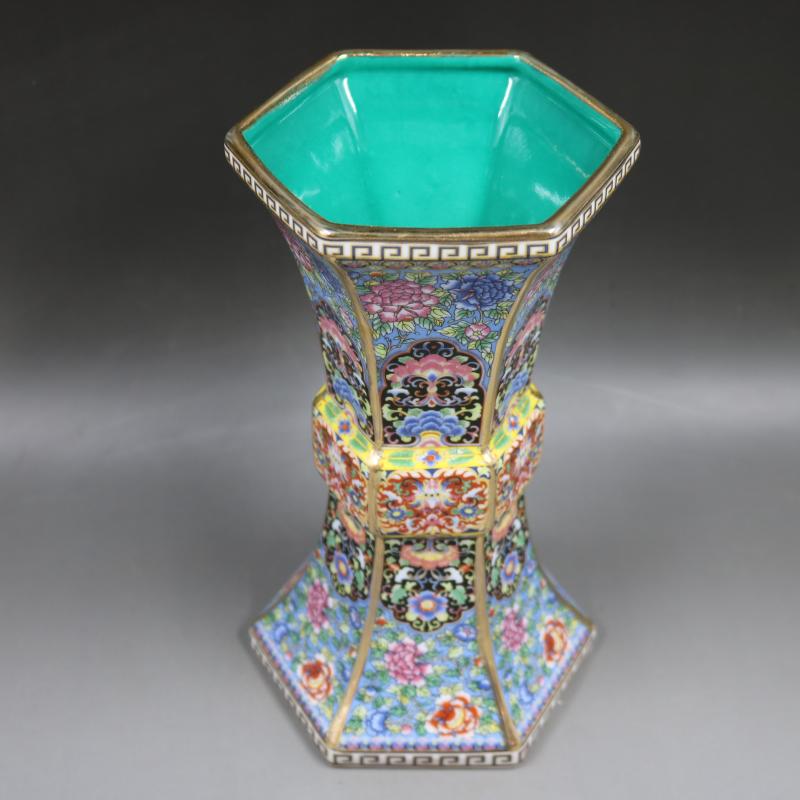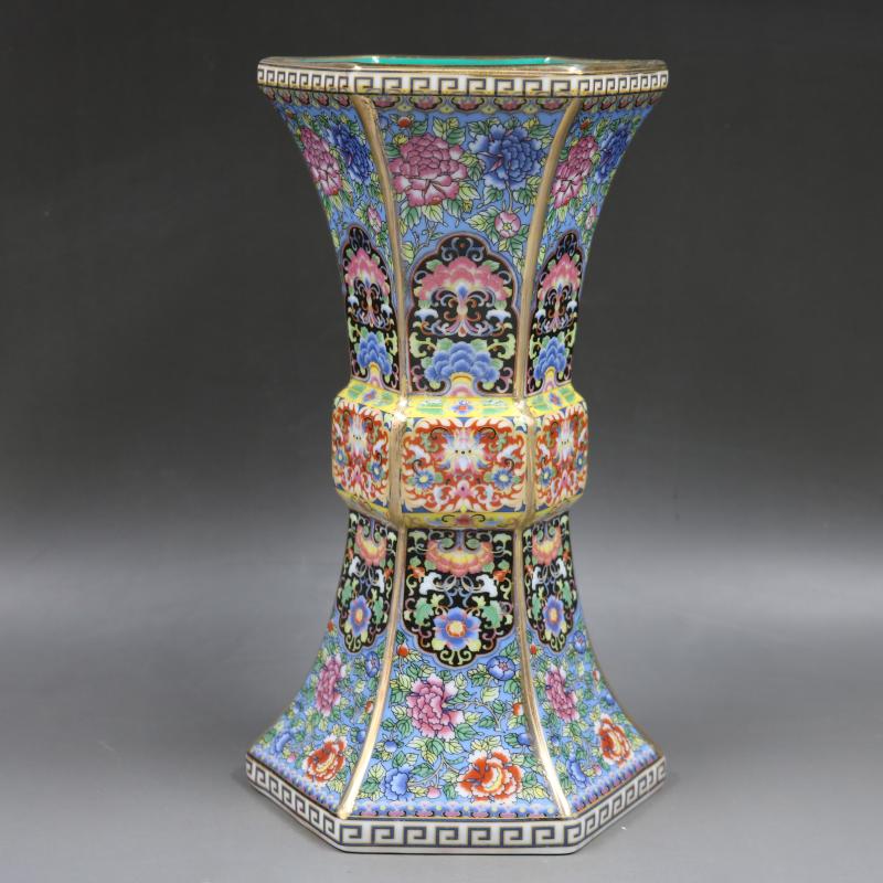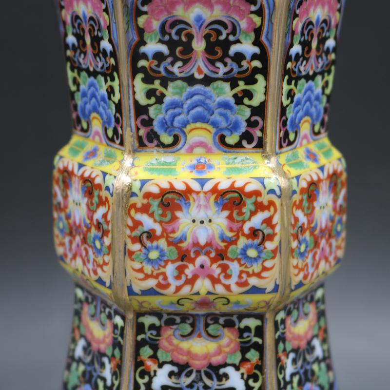 清乾隆琺瑯彩描金爬花花紋2號花觚瓶家居復古擺件仿古瓷器古董古1入