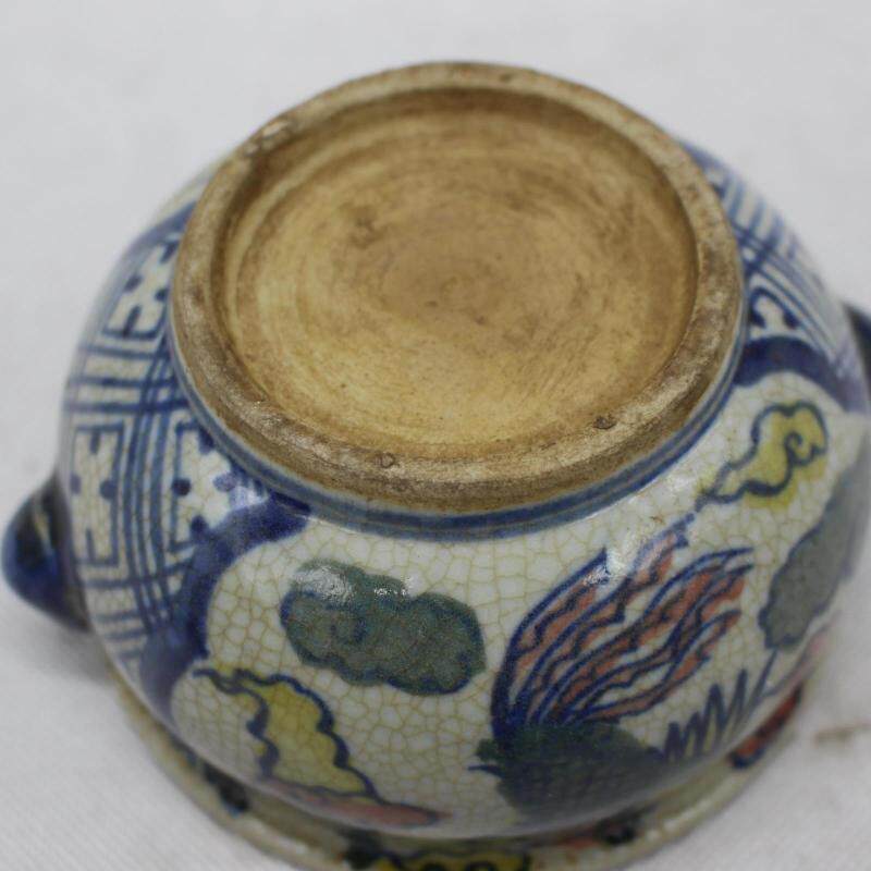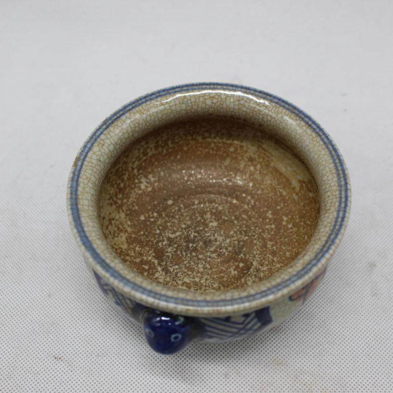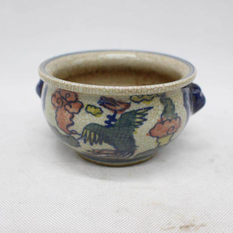 明青花斗彩鳳紋獸耳香爐 老貨收藏 家居擺件 仿古瓷器 古董古玩1入