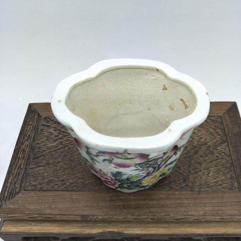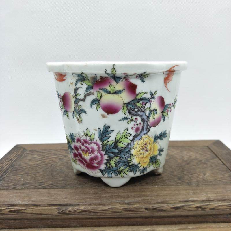 民國粉彩牡丹壽桃紋花口花盆 古董老貨舊貨古玩瓷器老貨擺件收藏1入