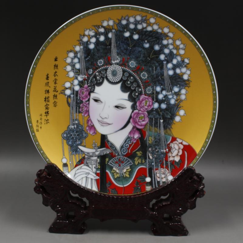清乾隆年制粉彩人物盤民間收藏家居酒店裝飾擺件瓷器古董古玩收藏1入
