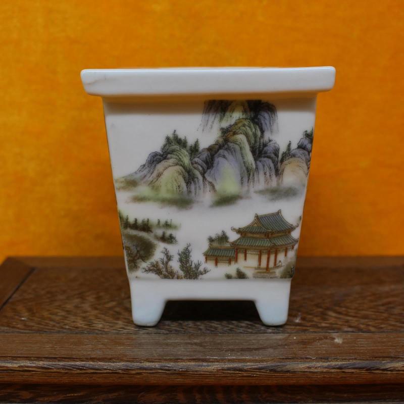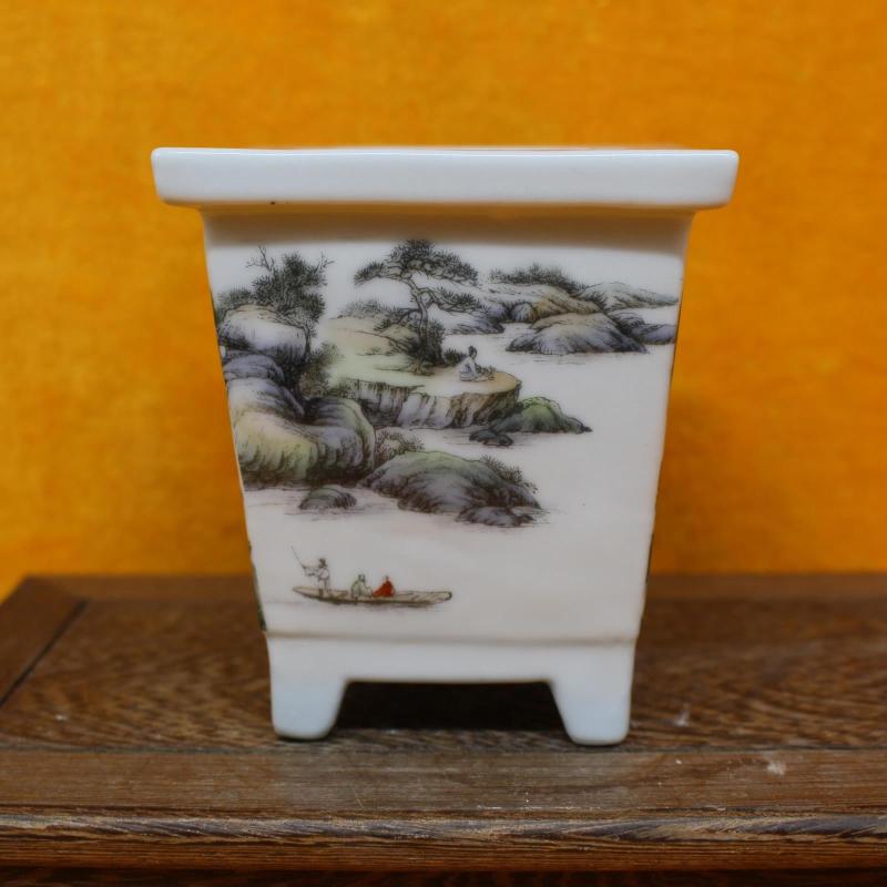[3]民國粉彩山水多肉蘭花菖蒲花盆古董老陶瓷舊貨古玩瓷器老貨擺1入