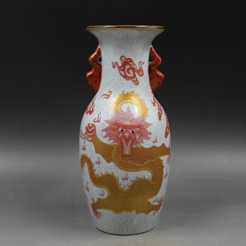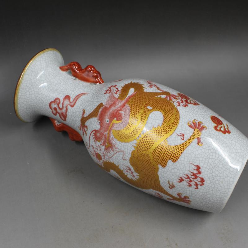 大清乾隆年制粉彩描金云龍紋賞瓶 民間收藏品 仿古瓷器擺件古玩1入
