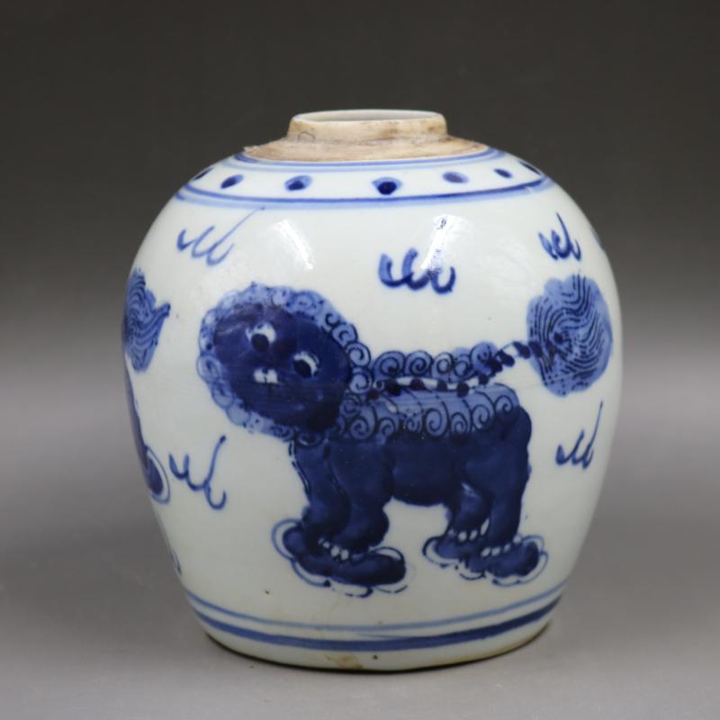 清光緒青花獅子紋罐茶葉罐老貨古董古玩瓷器擺件家居老貨裝飾瓷器1入