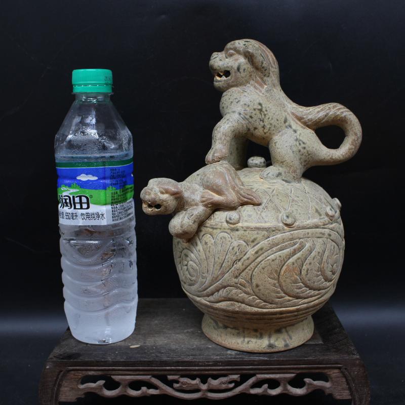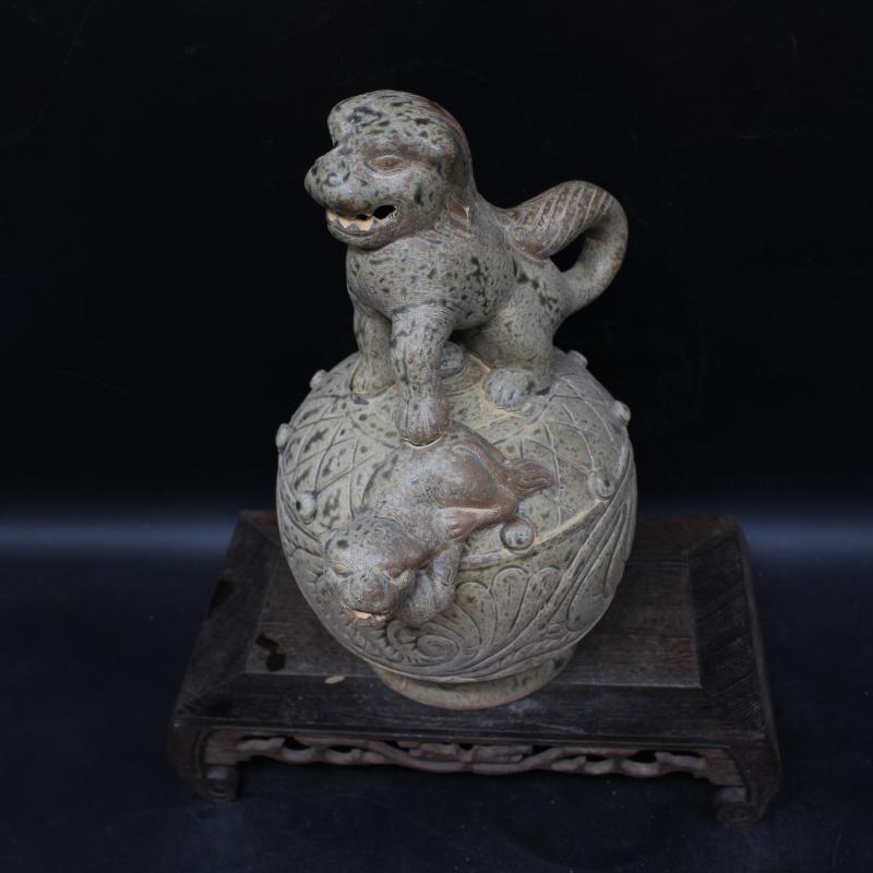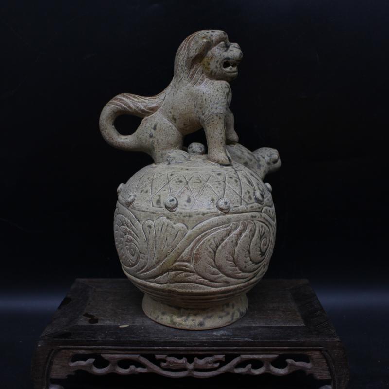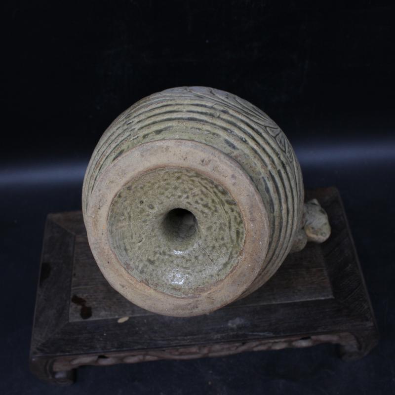 唐越窯雕刻花紋獅子倒灌茶壺 民間老貨收藏 仿古瓷器擺件古董古玩1入