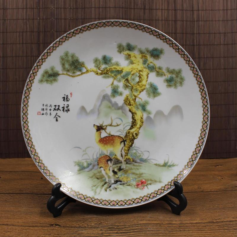 特價清 乾隆年制粉彩福祿壽盤 古董仿古瓷器 家居擺件收藏精品1入