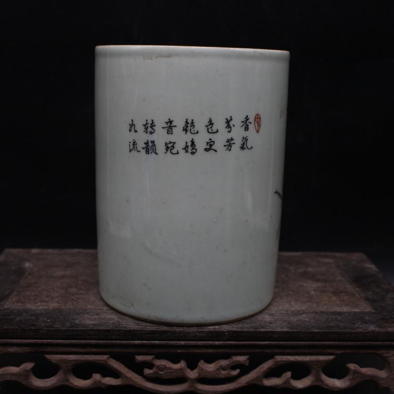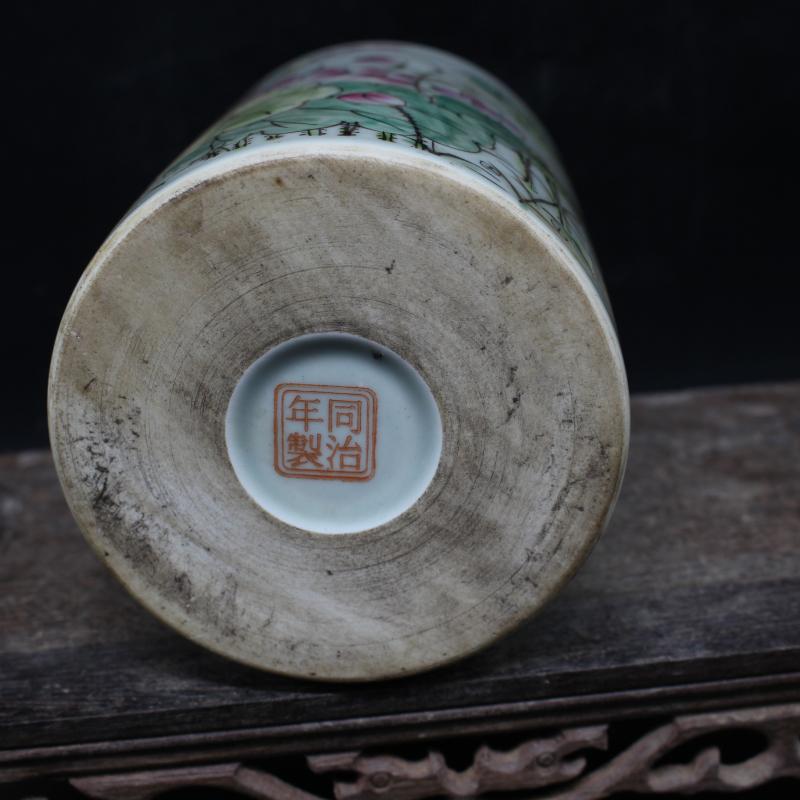 特清同治年制粉彩荷花花鳥筆筒 文房用品擺件 仿古瓷器 古董古玩1入