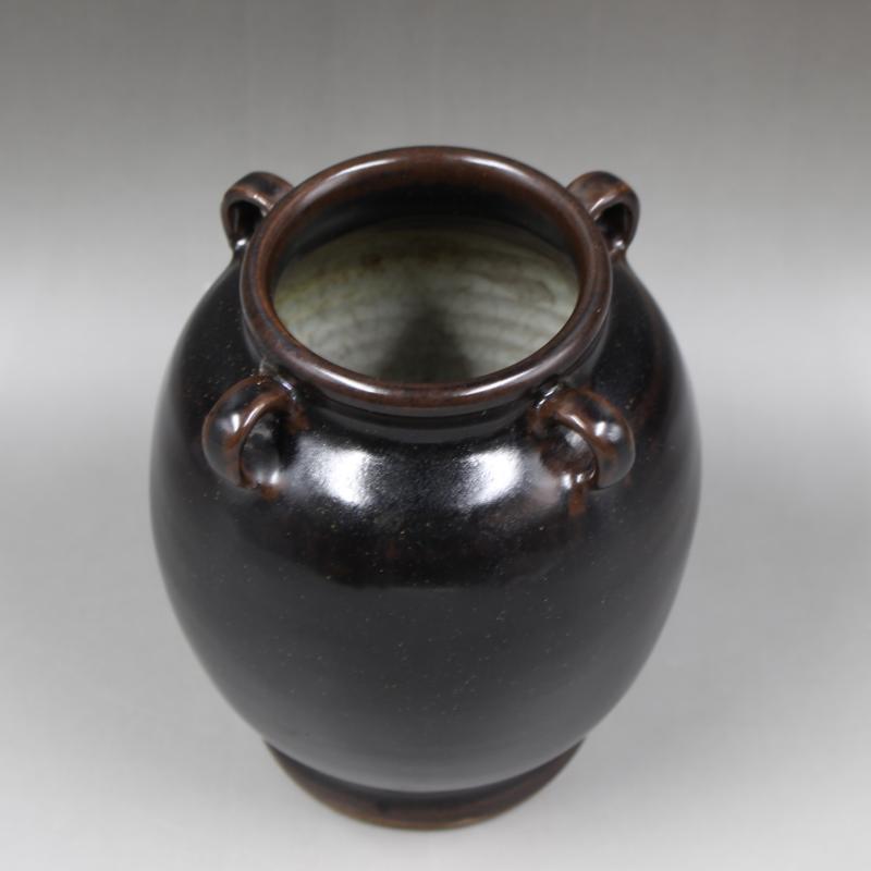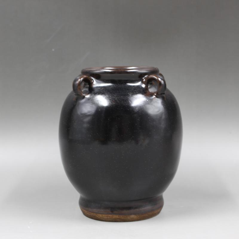 清中期烏金釉四喜罐老貨舊貨仿古裝飾瓷器家居擺件古董古玩收藏1入