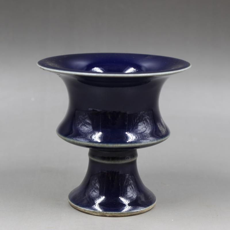 大明嘉靖年制單色釉祭藍高足酒杯精品家用仿古瓷器擺件古董古玩1入