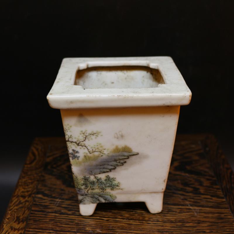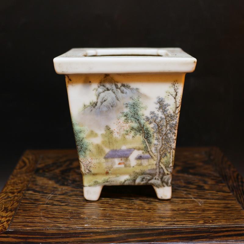 [2]民國粉彩山水多肉蘭花菖蒲花盆古董老陶瓷舊貨古玩瓷器老貨擺1入