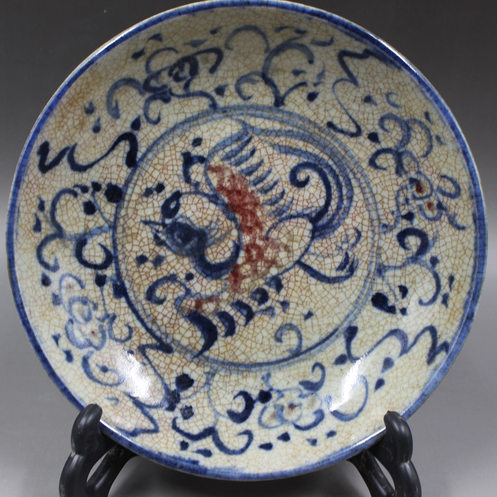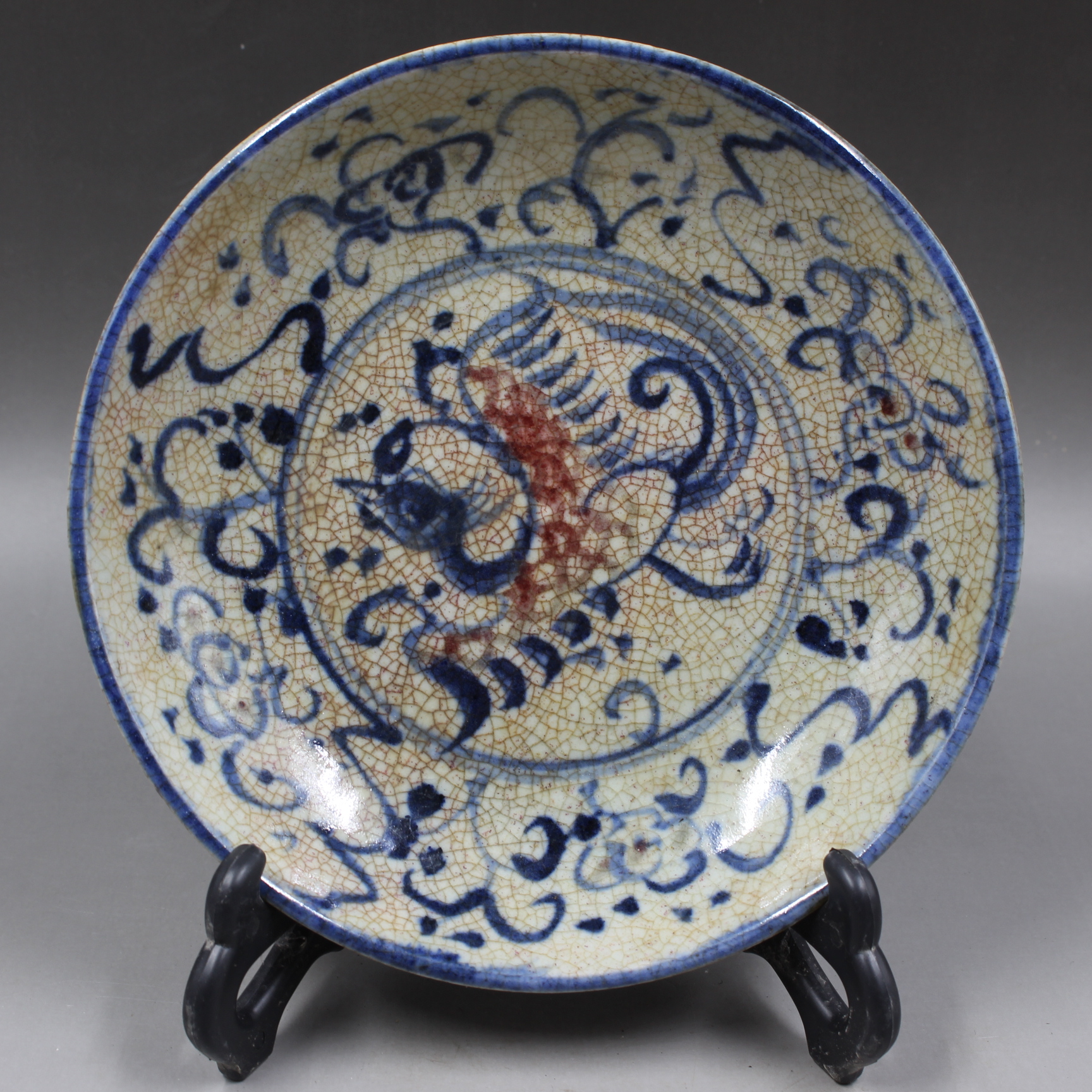 大清乾隆年制青花釉里紅鳳紋盤手繪仿古瓷器收藏擺件古董古玩收藏1入