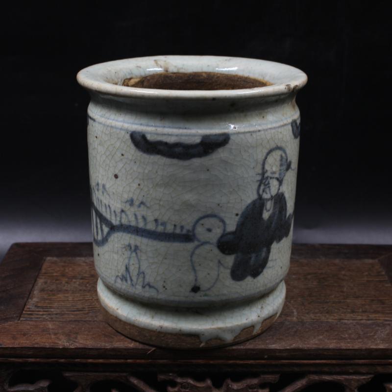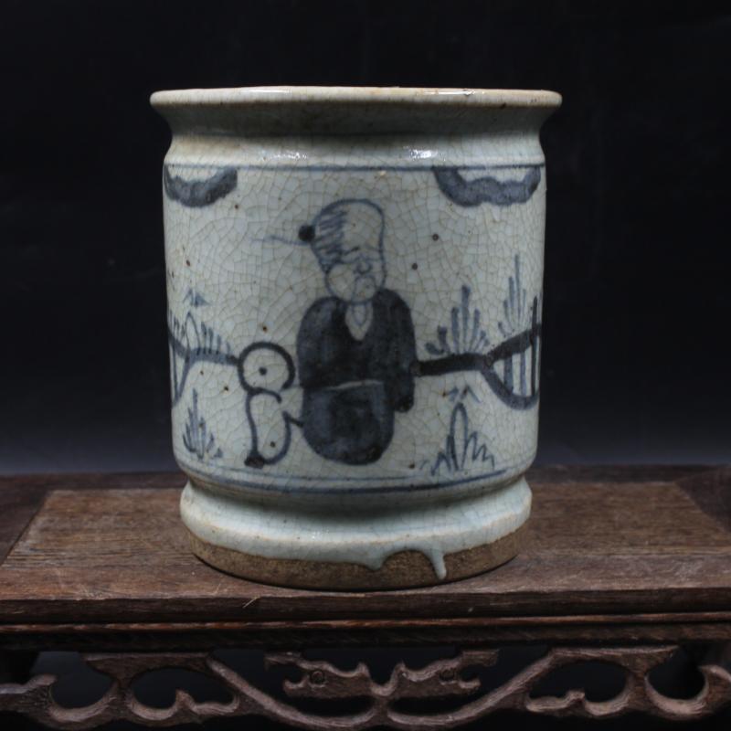 元青花高齡士人物筆筒 文房用品擺件 老貨仿古瓷器 古董古玩1入