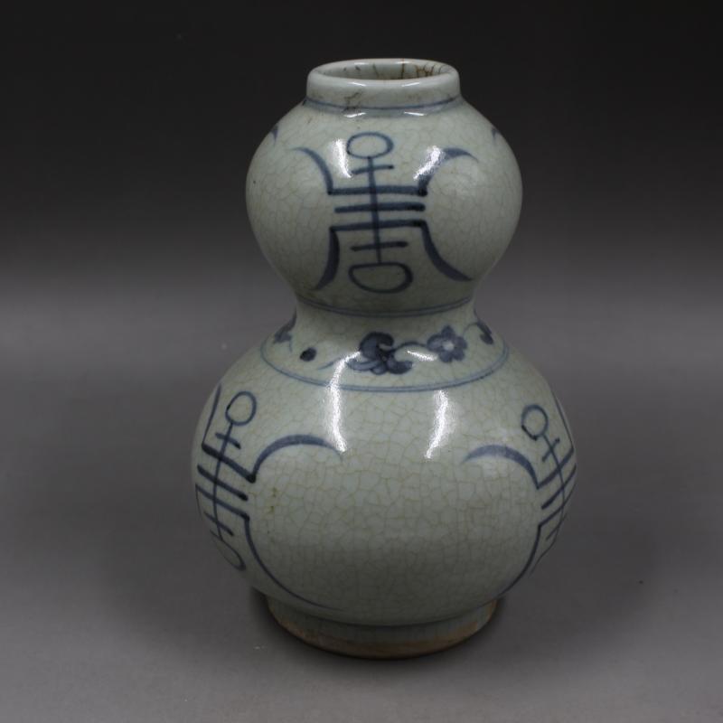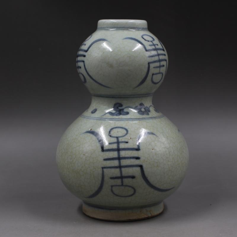 元青花開片壽紋葫蘆瓶手繪家居擺件瓷器老貨仿古瓷器古董古玩收藏1入