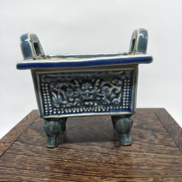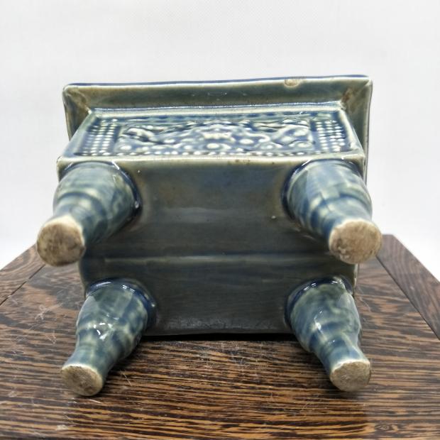 元區府窯雕刻獅紋青釉小鼎 仿古瓷器收藏 古董古玩擺件 家居用品1入