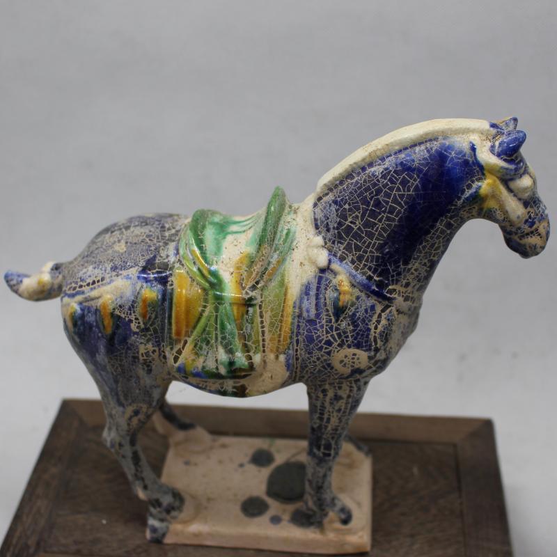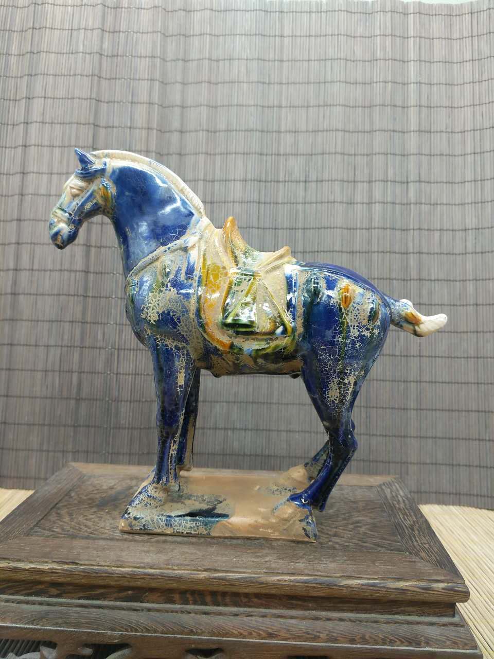唐三彩全手工戰馬擺件 家居擺件 古董古玩收藏 仿古瓷器 老貨精品1入