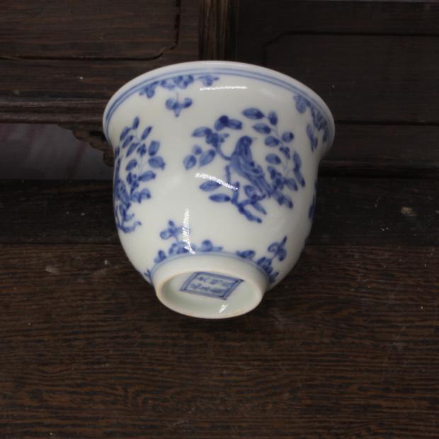 大明成化年制全手工青花花鳥茶杯 家居用品擺件 仿古瓷器古董古玩1入