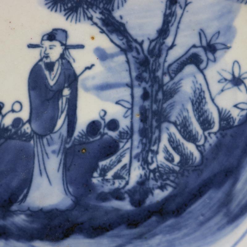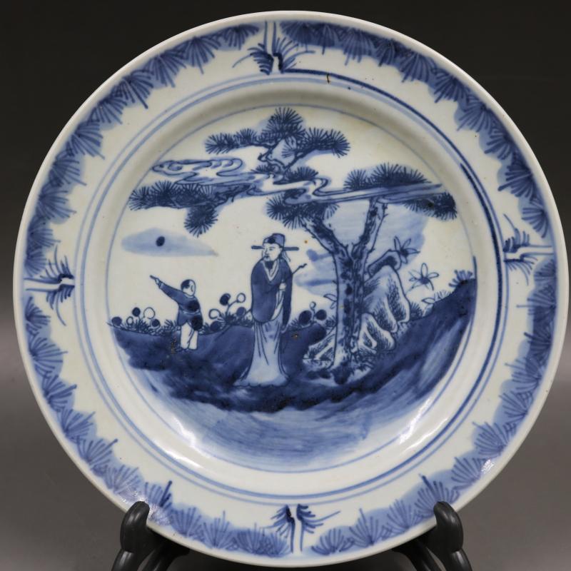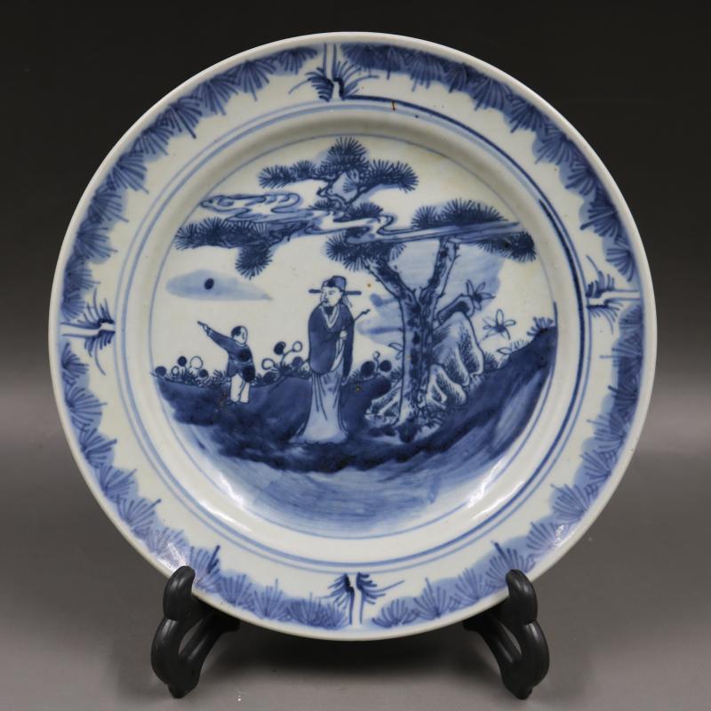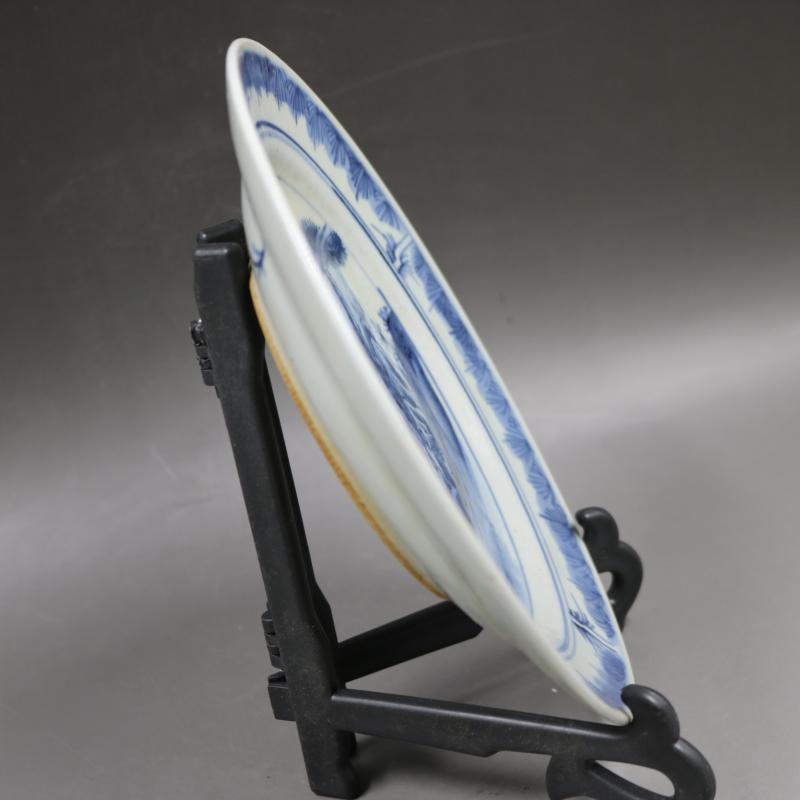 清康熙全手工手繪青花人物故事盤碟 老胎老貨瓷器擺件 古董古玩1入