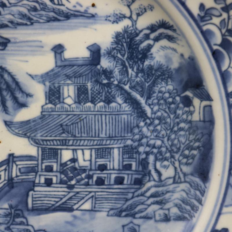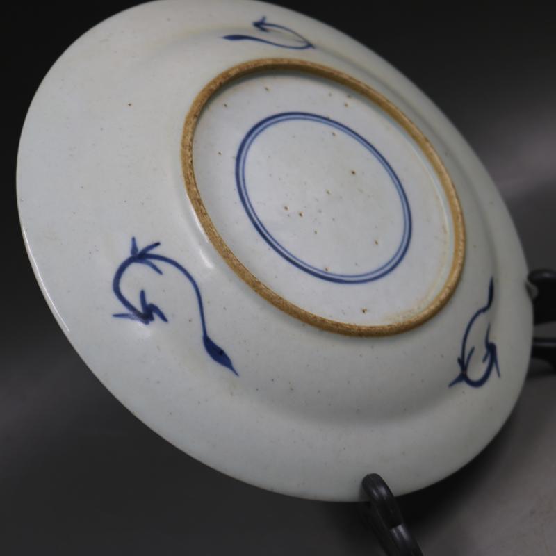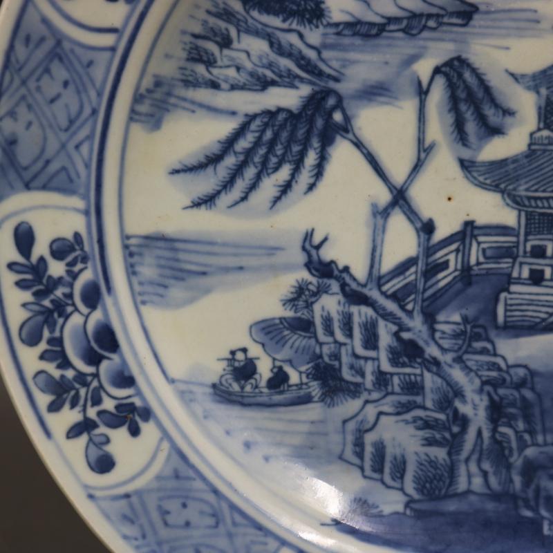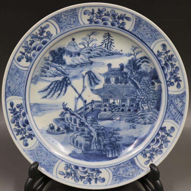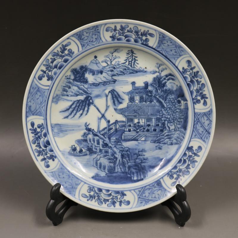 [2]清康熙青花山水人物平盤仿古老貨瓷器家居博古架擺件古董古玩收藏1入