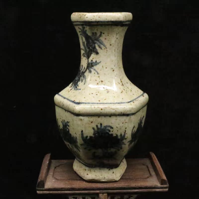 特元全手工手繪青花花草六方瓶 老貨景德鎮瓷器 古董古玩 擺件1入
