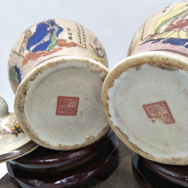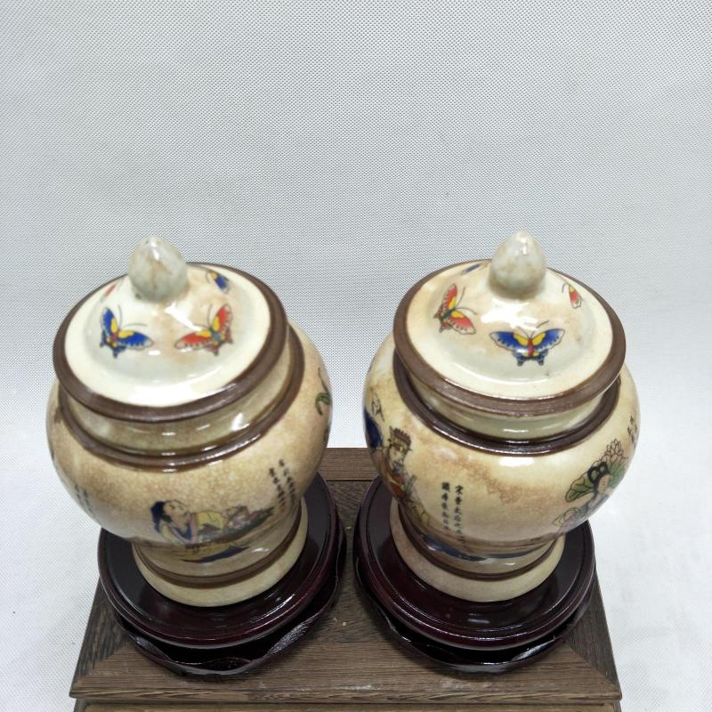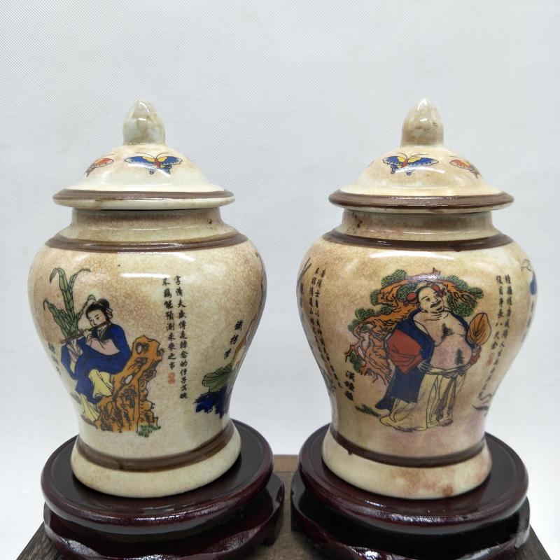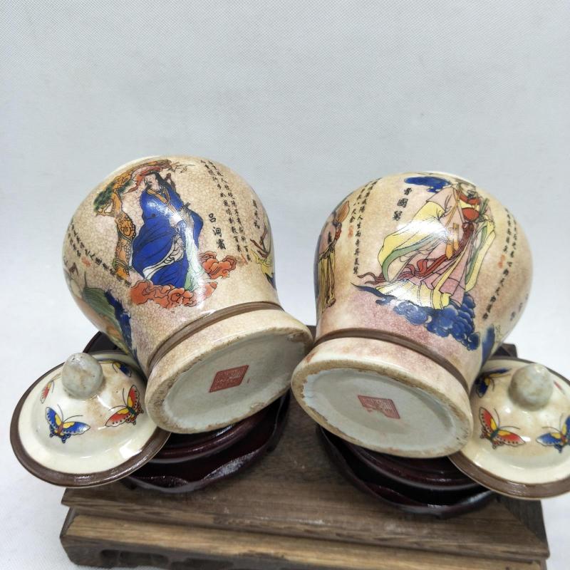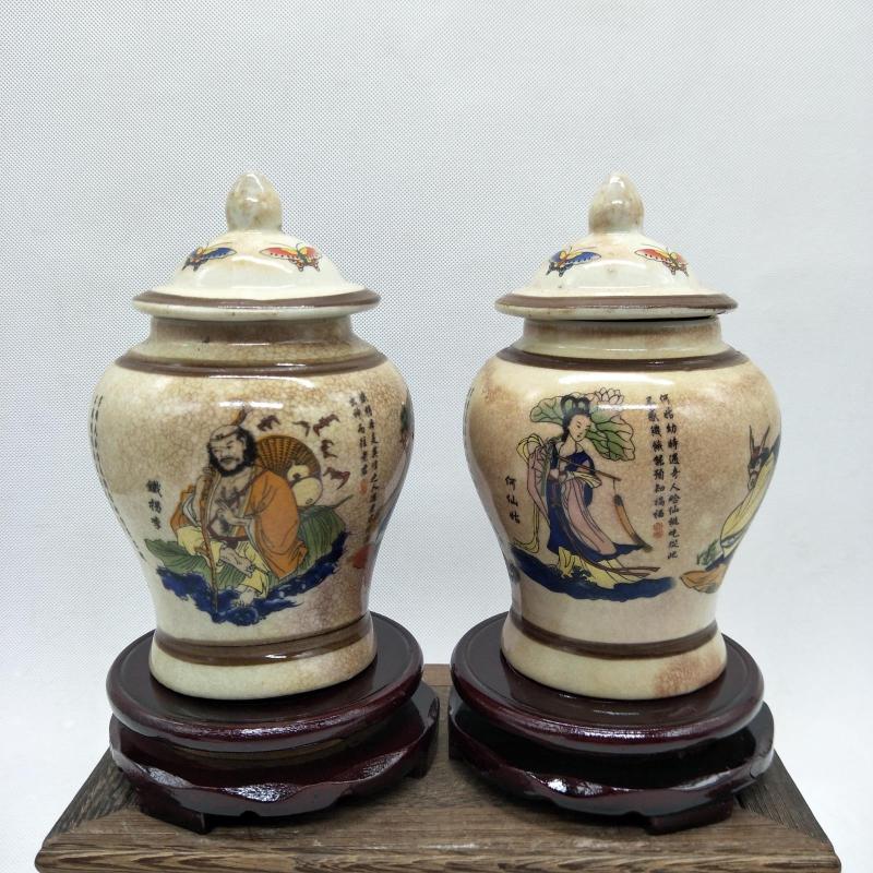 清乾隆粉彩人物八仙將軍茶葉罐 仿古瓷器 古董古玩 老貨收藏擺件1入