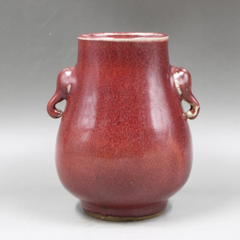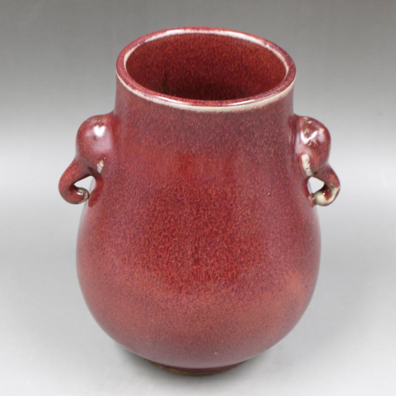 大清乾隆年制祭紅釉象耳尊古董古玩仿古瓷器全手工高仿復古擺件1入