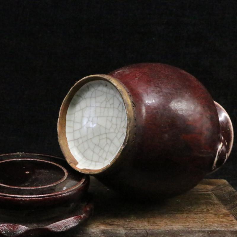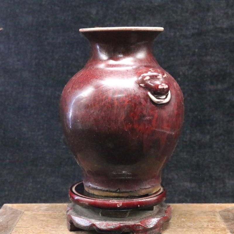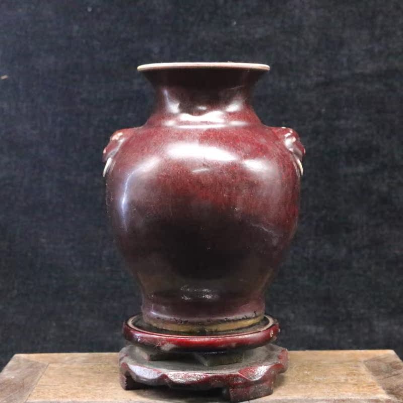 清中期 祭紅獸耳罐 民間收藏 家居擺件 全手工 仿古瓷器 古董古玩1入