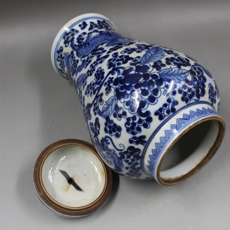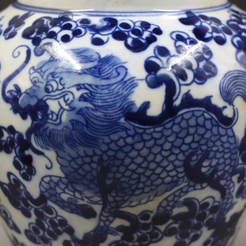 清同治年制青花穿花麒麟紋茶葉蓋罐仿古瓷器裝飾家居擺件古董古玩1入