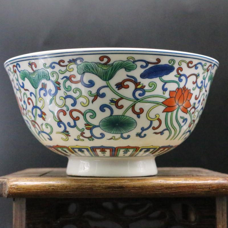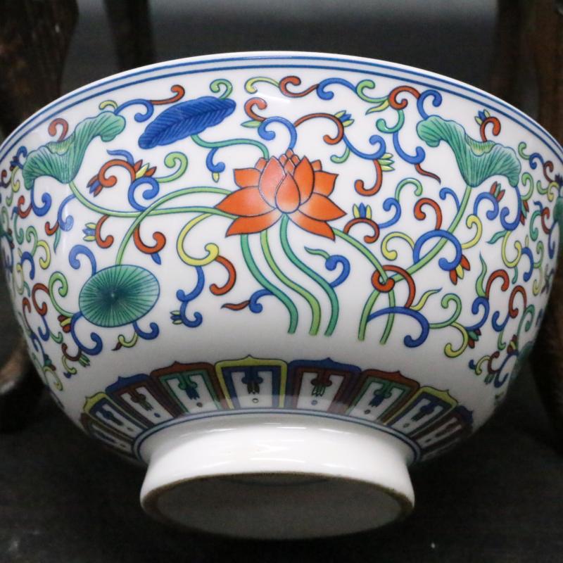 大清乾隆年制粉彩荷花碗 仿古老瓷器 手工古董古玩 家居用品擺件1入