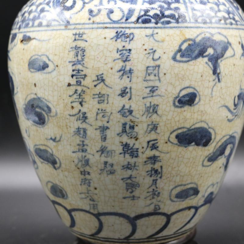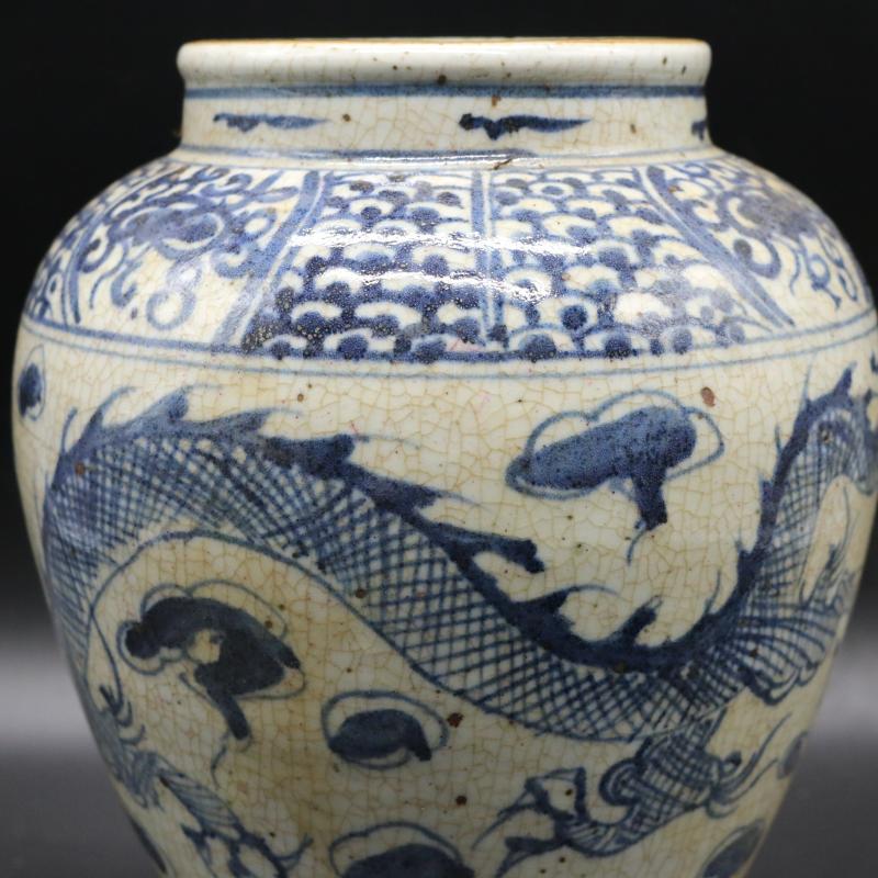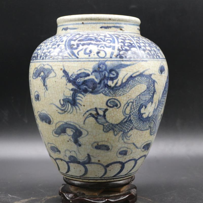 元 青花龍紋開片大壇 古董古玩 仿古瓷器 舊貨老貨精品家居擺件1入