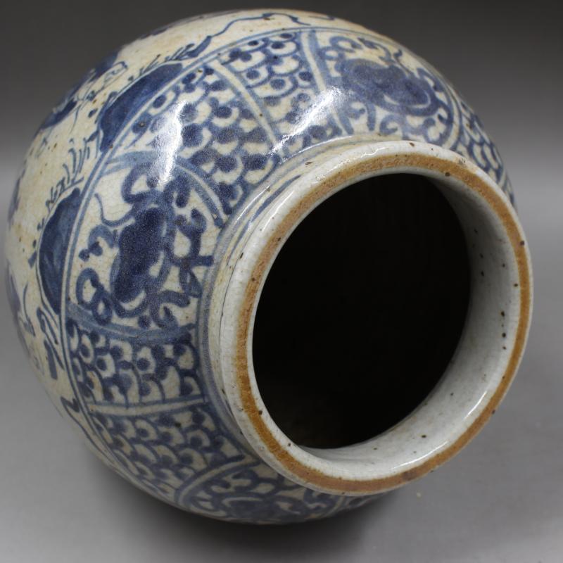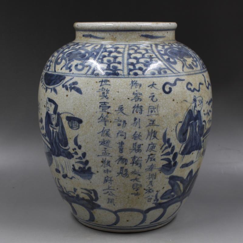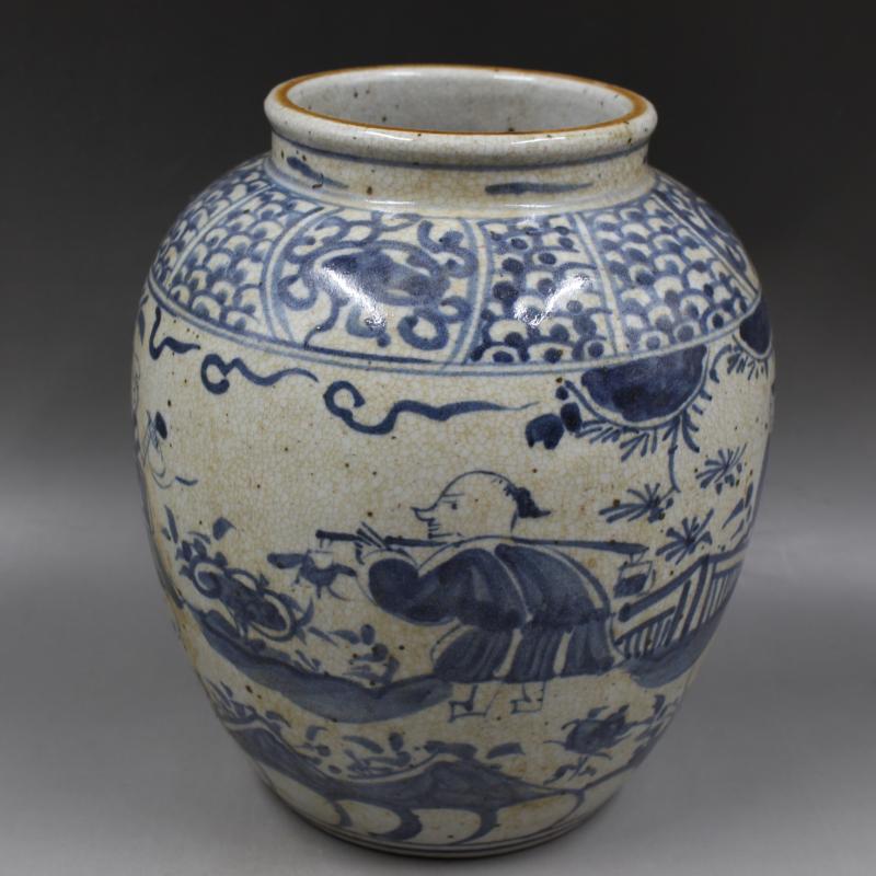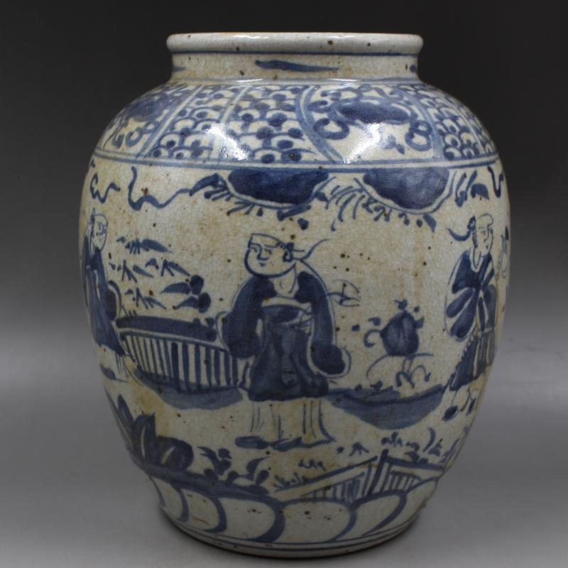 清青花人物故事壇罐全手繪仿古瓷器古董古玩精品家居擺件全手工1入