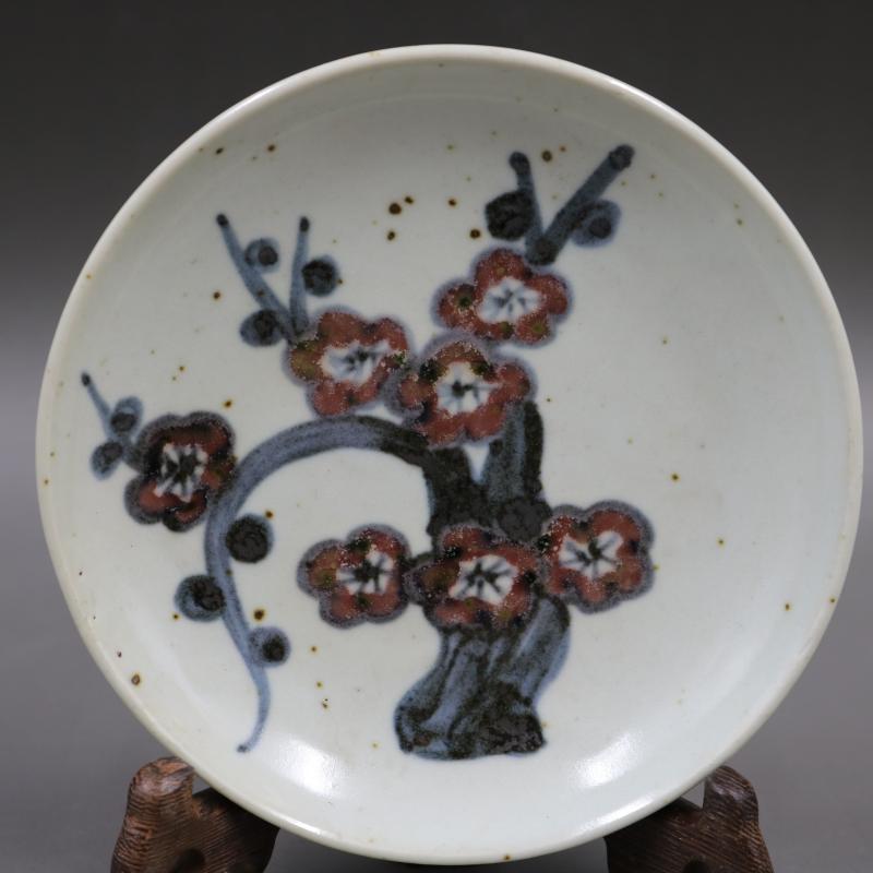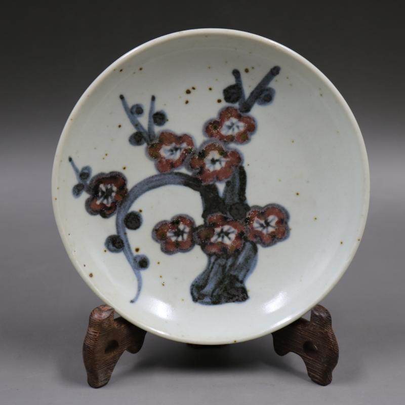 清光緒青花釉里紅冰梅紋小碟仿古瓷器古董古玩家居擺件做舊精品1入