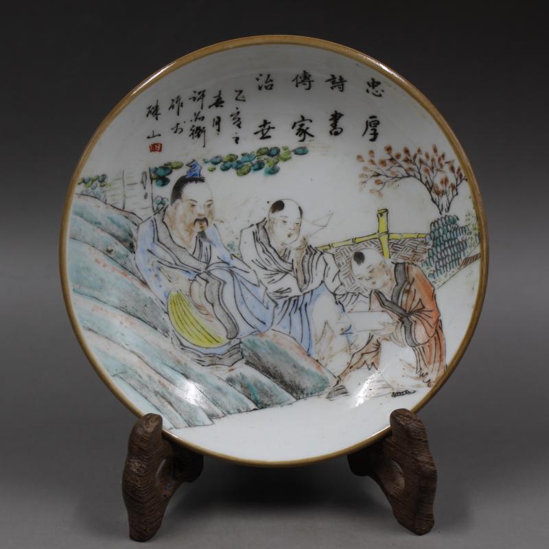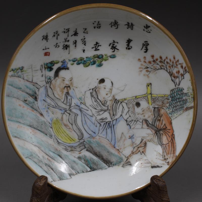 清乾隆粉彩人物故事擺件盤蝶仿古老貨瓷器古董古玩收藏家居擺件1入