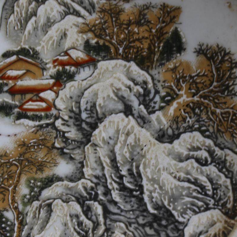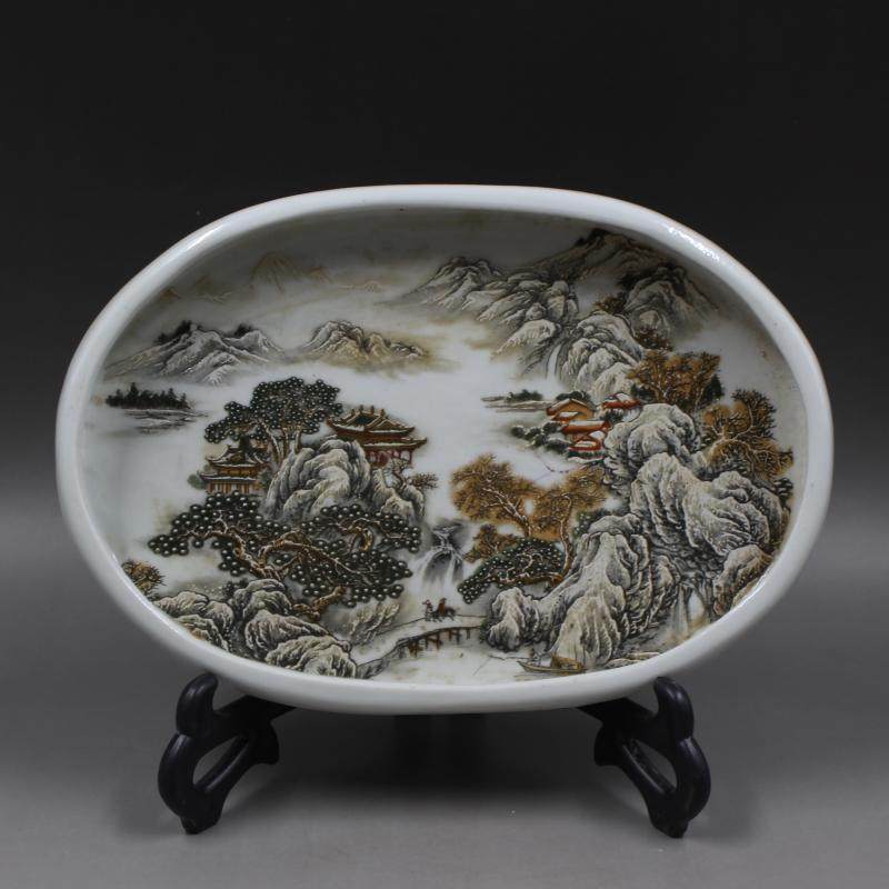 民國淺降彩山水茶盤古董古玩仿古瓷器舊貨收藏家居擺件家用瓷器1入