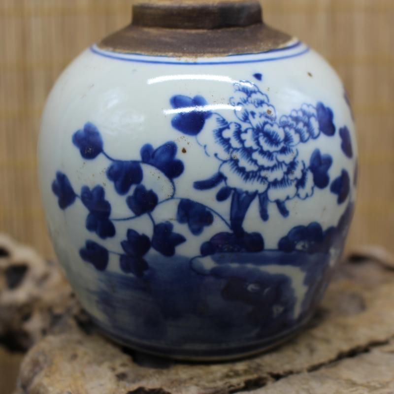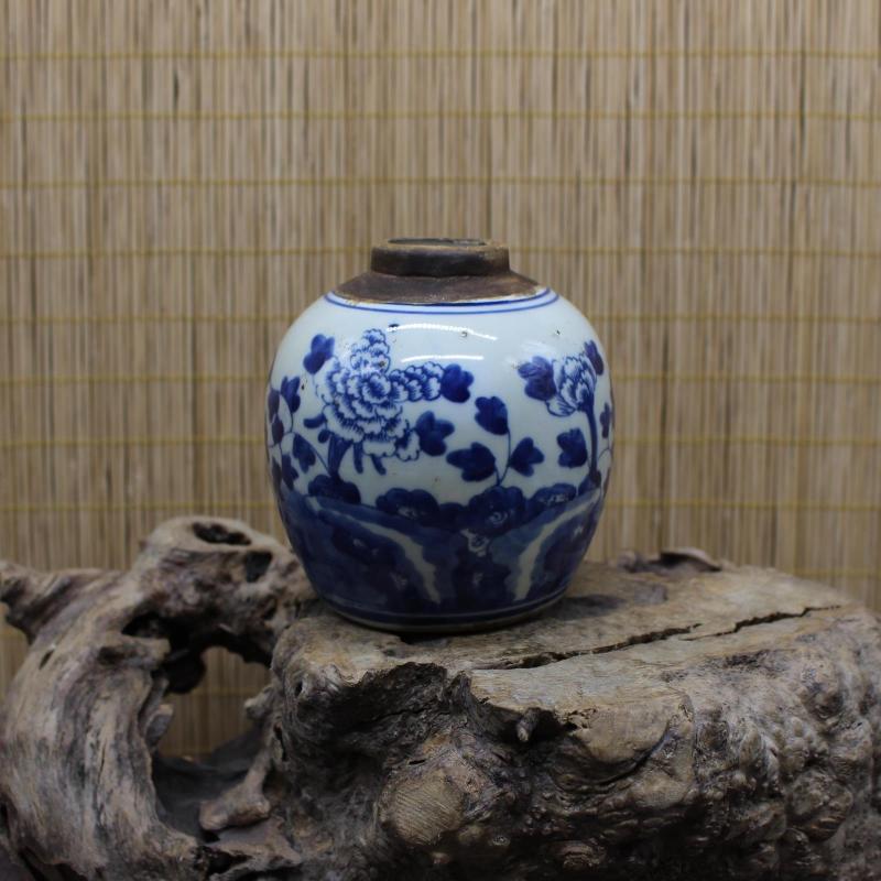 特價明嘉慶青花牡丹花紋老罐子手工仿古瓷器老貨收藏古董古玩擺件1入
