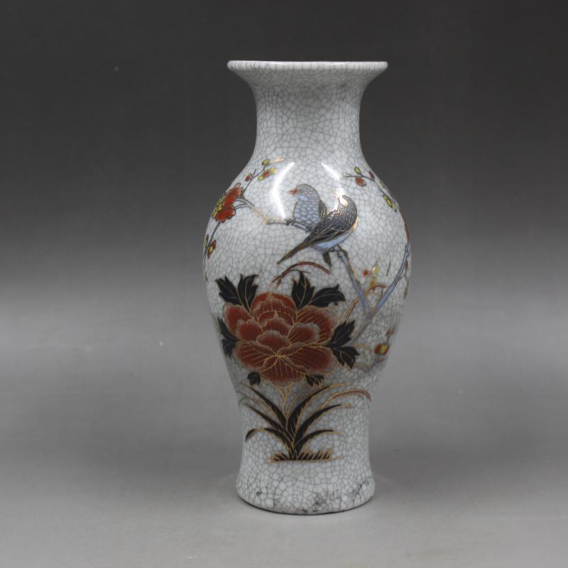 清乾隆年制粉彩描金花鳥觀音瓶仿古老貨瓷器擺件舊貨古董古玩收藏1入