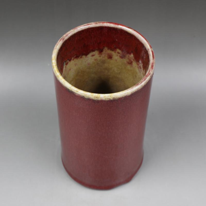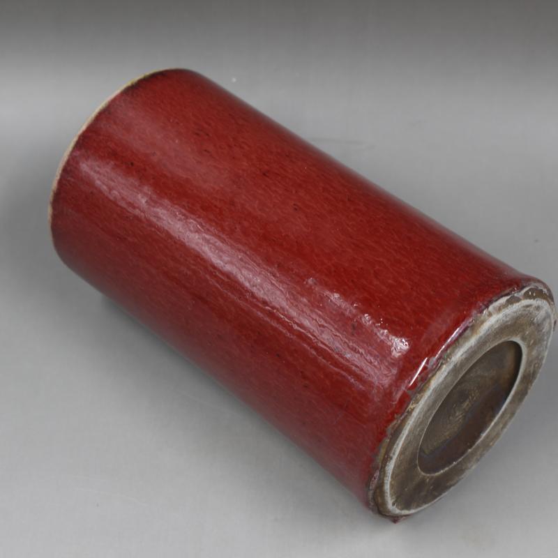 清雍正年制郎紅釉筆筒手工仿古老貨瓷器家居文房擺件古董古玩收藏1入