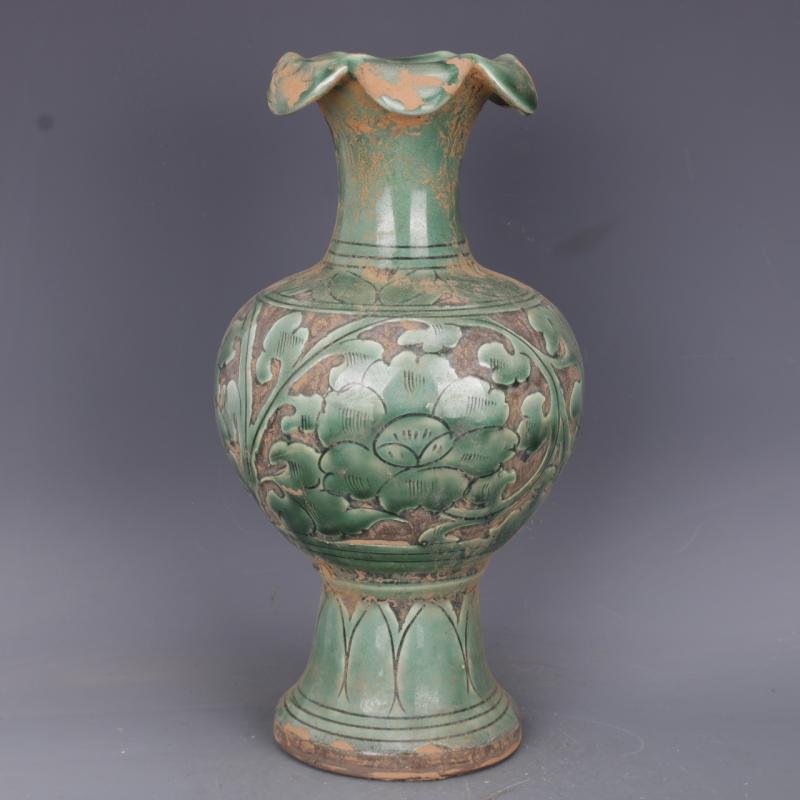 宋磁州窯刻纏枝花紋賞瓶仿古老貨瓷器家居中式裝飾擺件古玩收藏1入