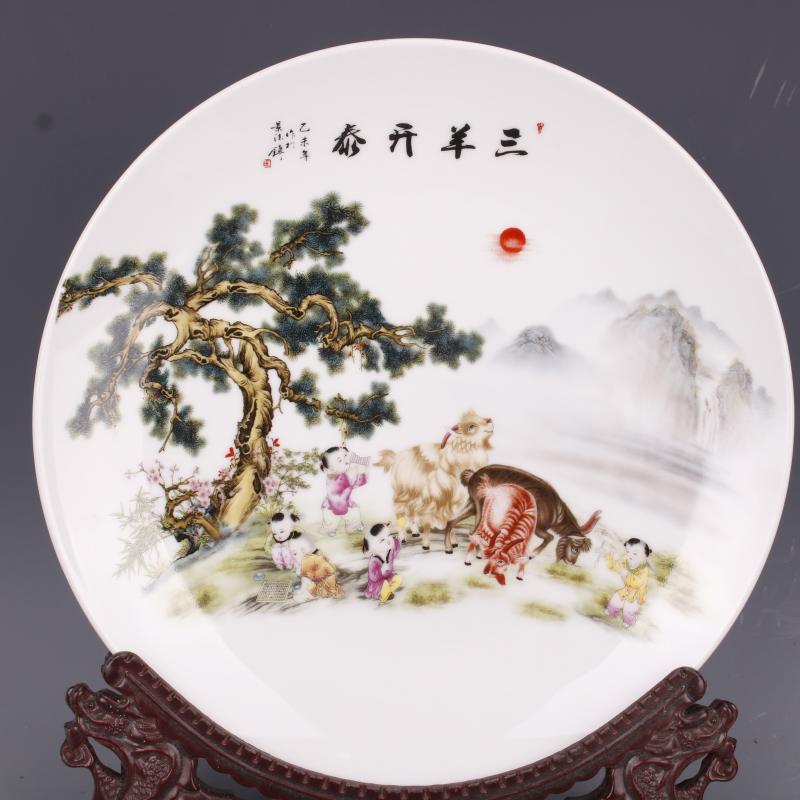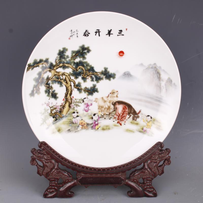 清乾隆粉彩三陽開泰紋平盤觀賞工藝盤復古收藏中式擺件仿古瓷器1入
