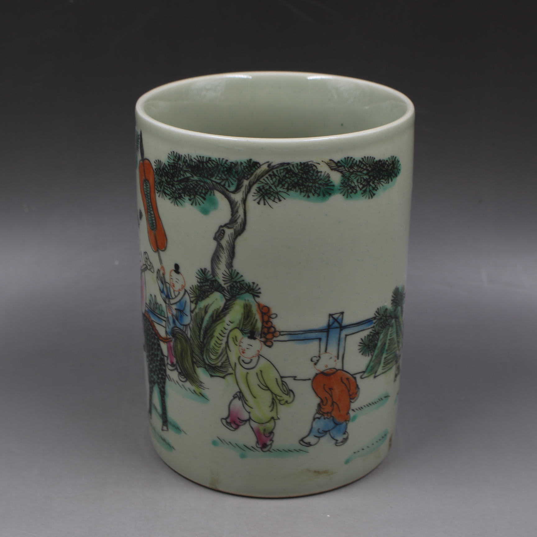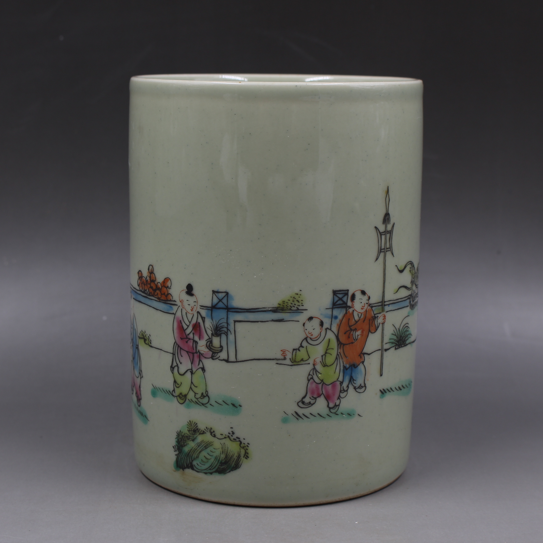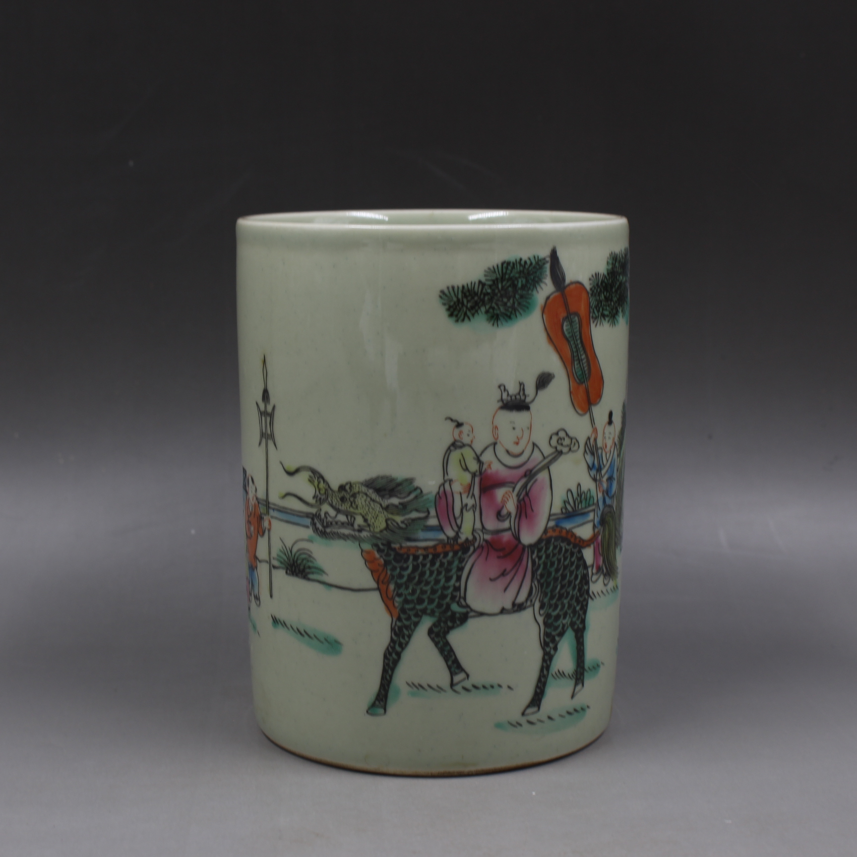 大清同治粉彩人物麒麟送子筆筒文房用品擺件仿古瓷器老貨古董古玩1入