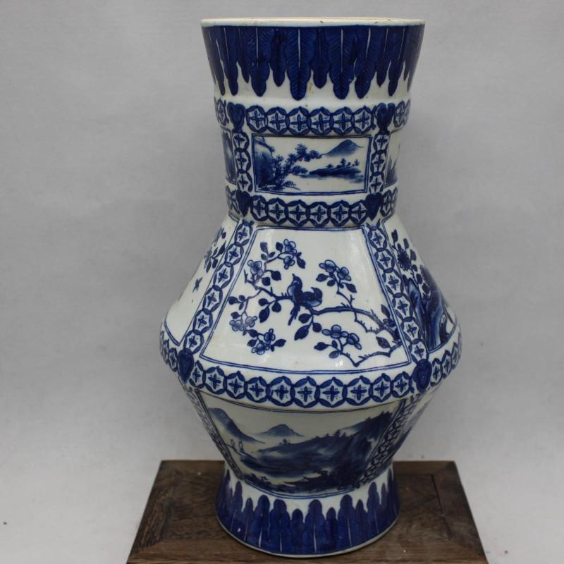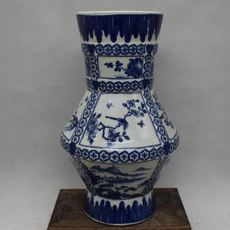 清乾隆年制青花花鳥山水福筒瓶 仿古瓷器擺件 古董古玩收藏1入