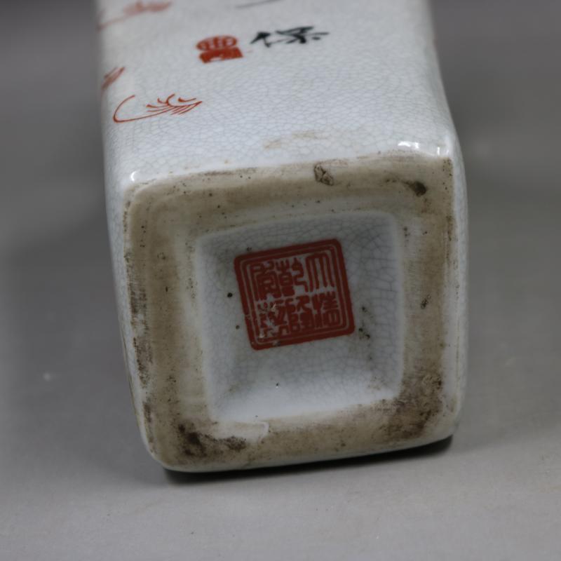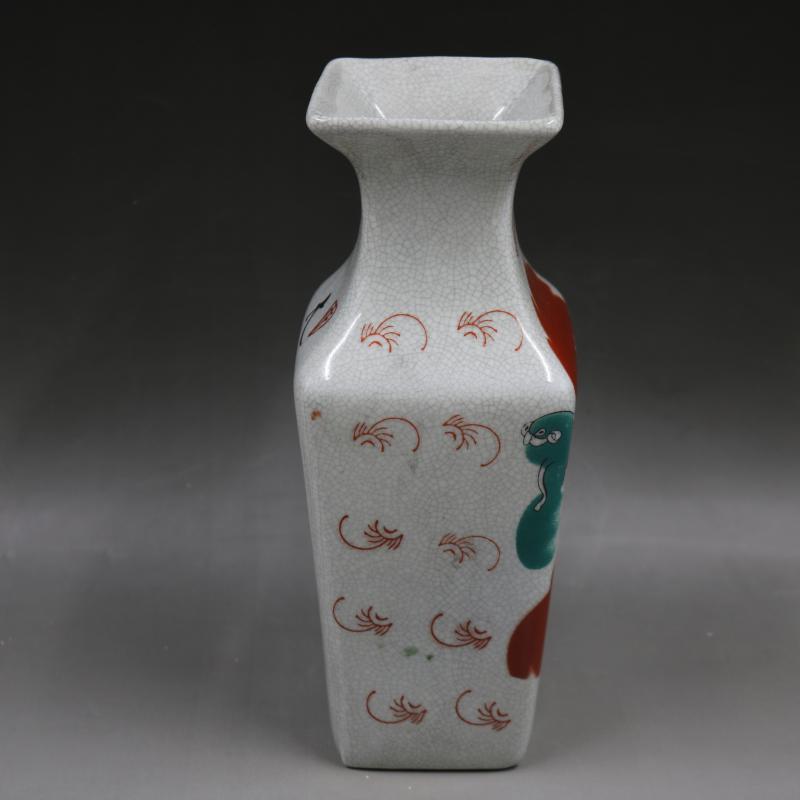 清乾隆粉彩獅紋四方花瓶家居裝飾老貨瓷器擺件收藏古董古玩老貨1入