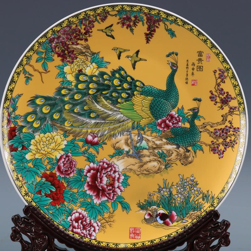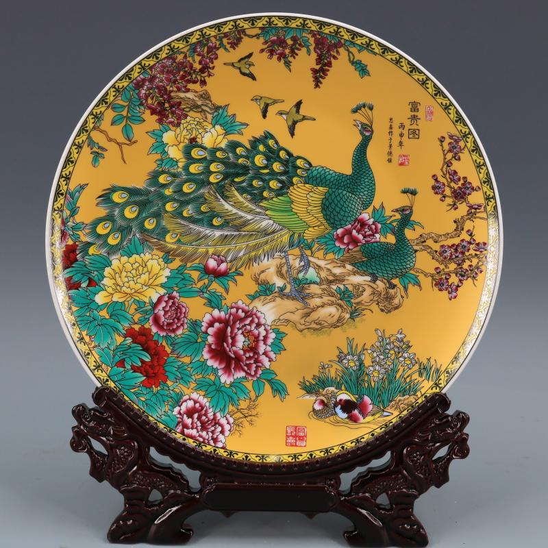 [2]清乾隆款粉彩富貴花鳥紋平盤仿古工藝品瓷器家居擺件古董古玩收藏1入